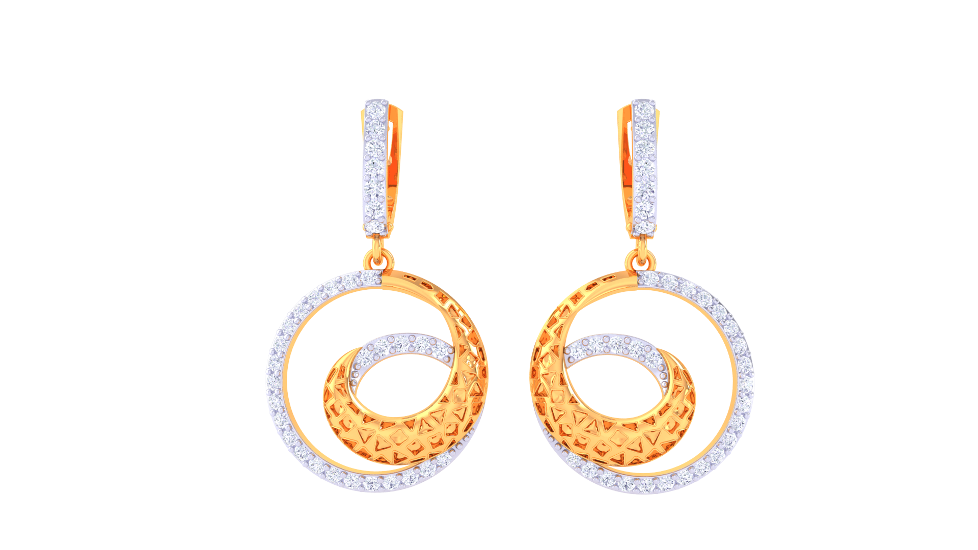 A captivating blend of texture and tone, these dual-finish drop earrings are crafted from 4.29 grams of radiant gold and adorned with 0.58 carats of shimmering diamonds.
