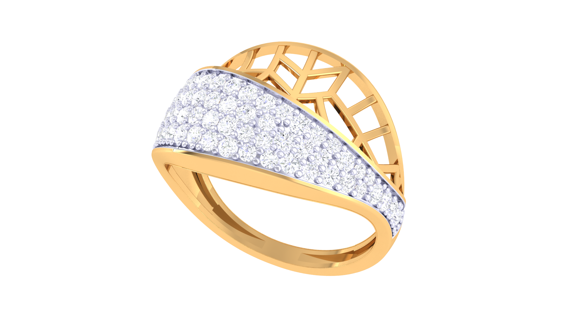 Lumiere Twist Lattice Gold Ring - 0.62 Ct Pavé Diamond
