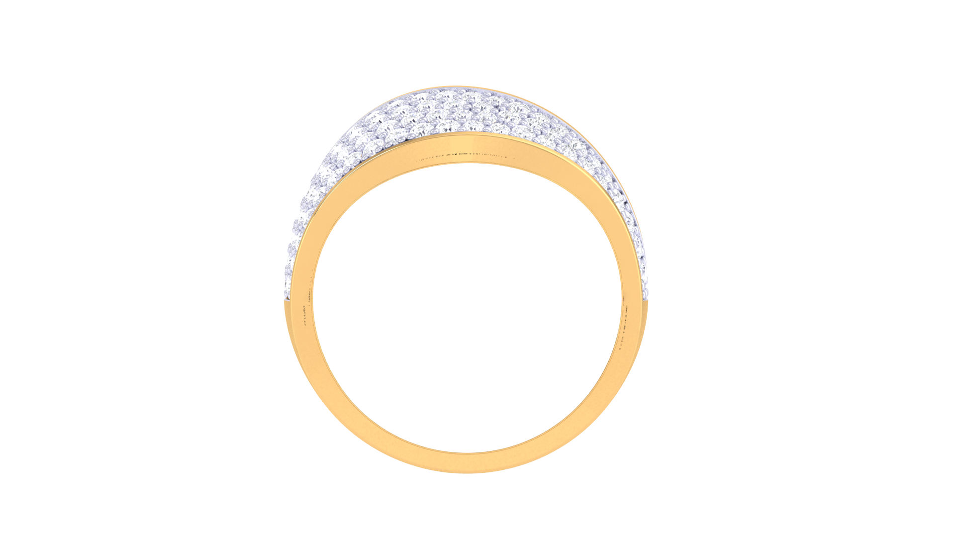 Crafted from 3.20 grams of radiant gold, this statement ring showcases a wide band adorned with 0.62 carats of pavé-set diamonds that shimmer with every movement.