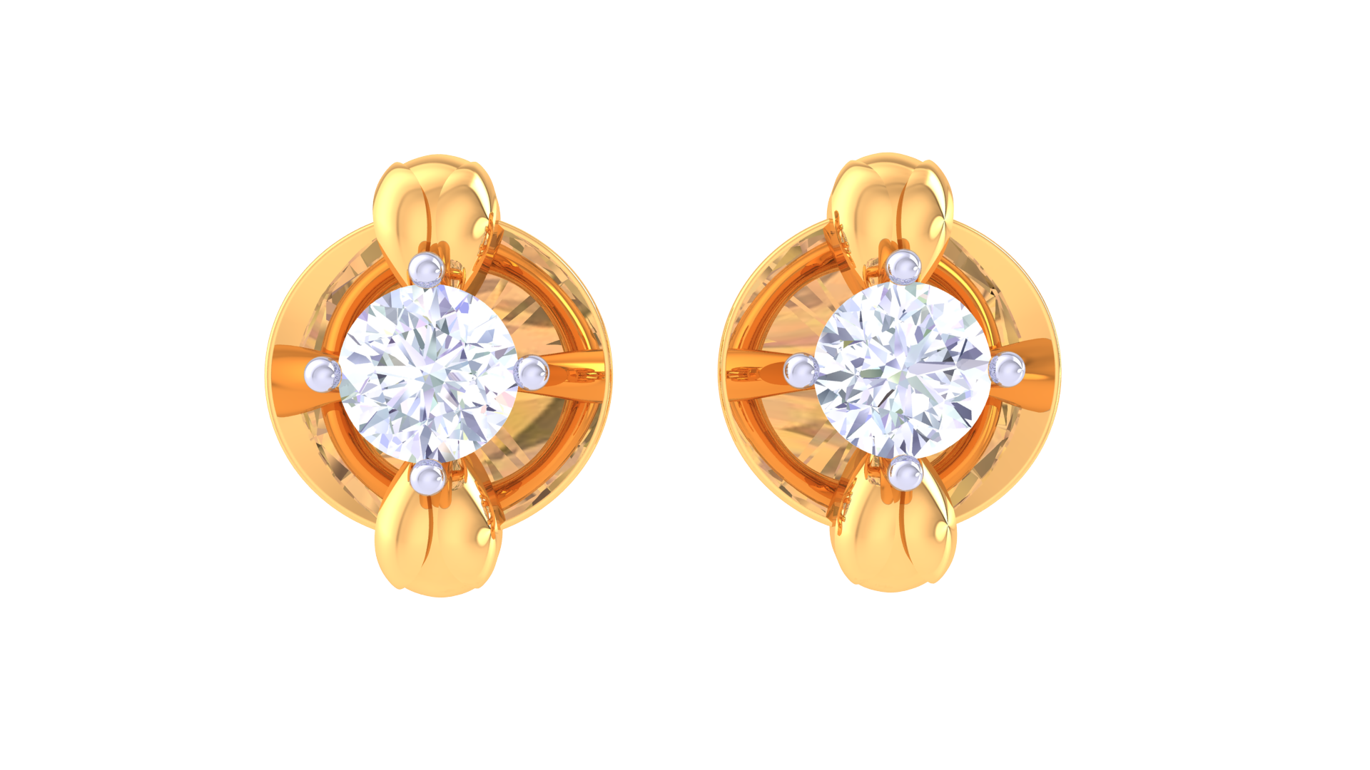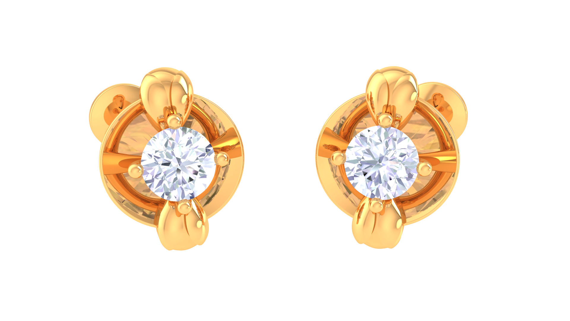 Floral Golden Petal Diamond Stud Earrings - 0.32 Ct