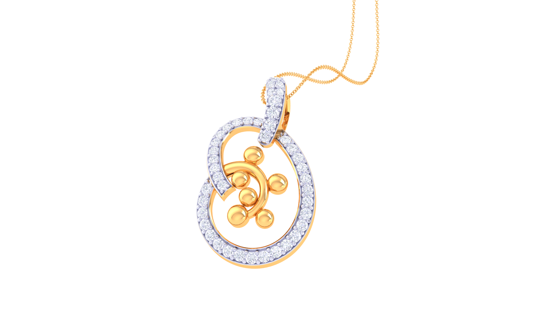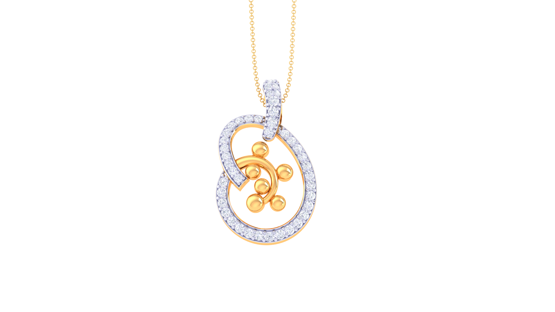 Elevate your elegance with this intricately crafted pendant, featuring a radiant 0.40 carat ensemble of brilliant-cut diamonds encircling a stylized gold motif.