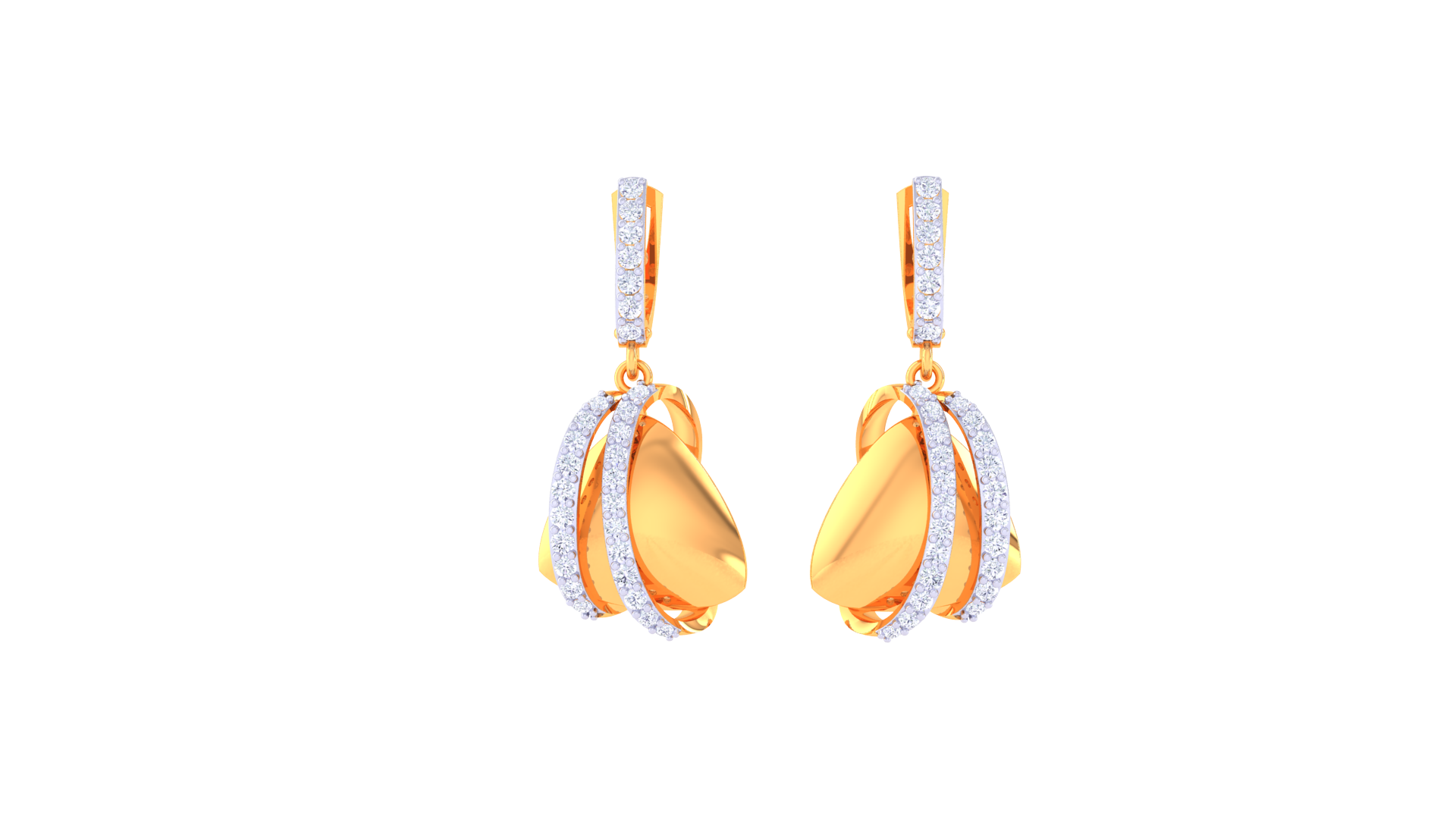Twin Arc Teardrop Hoop Earrings – 0.52 Ct Diamond Embrace in Sculpted Gold