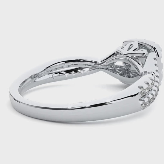 The halo design enhances the diamond’s brilliance, creating a timeless piece that exudes sophistication and grace for any special occasion.