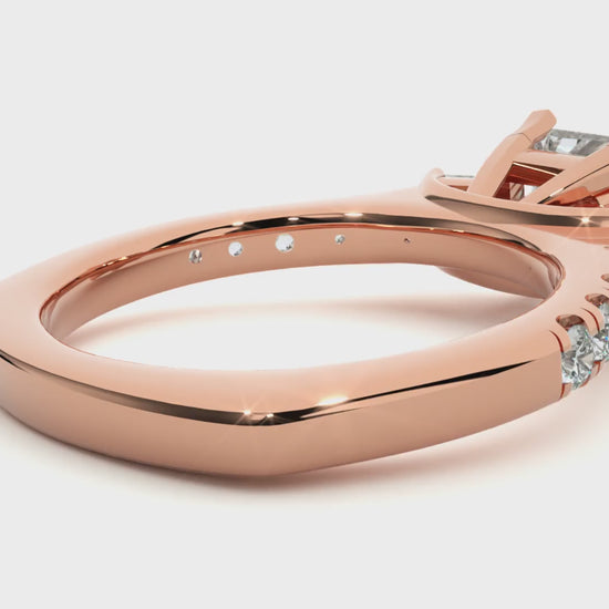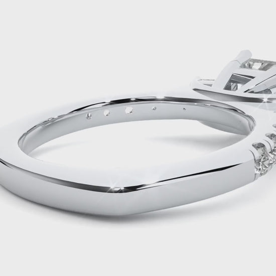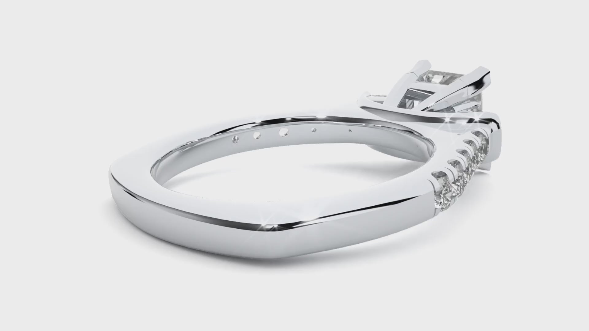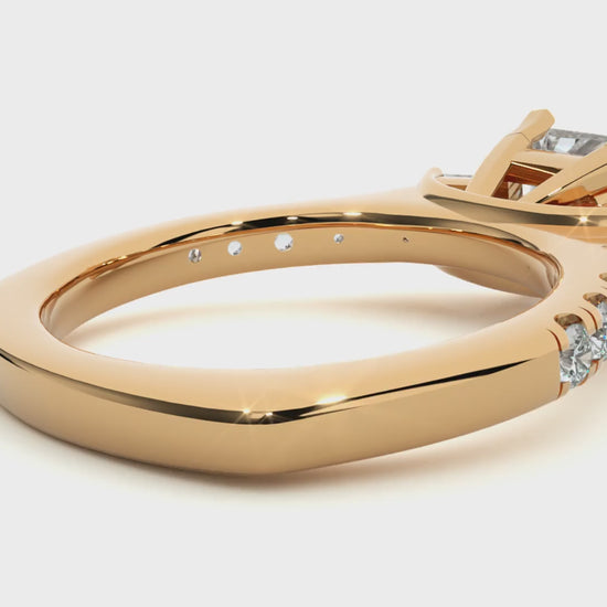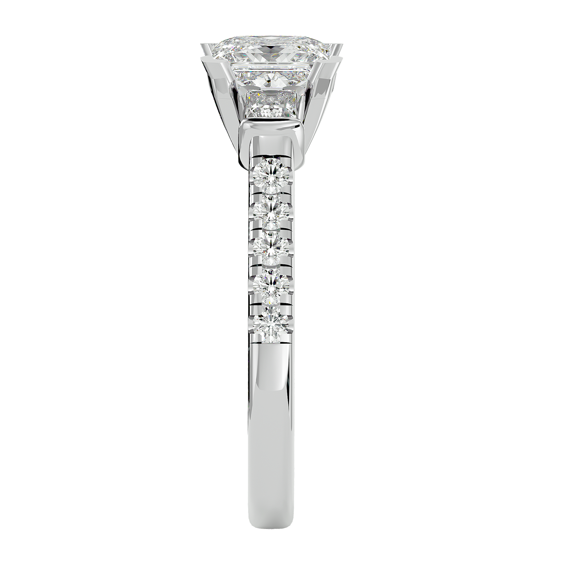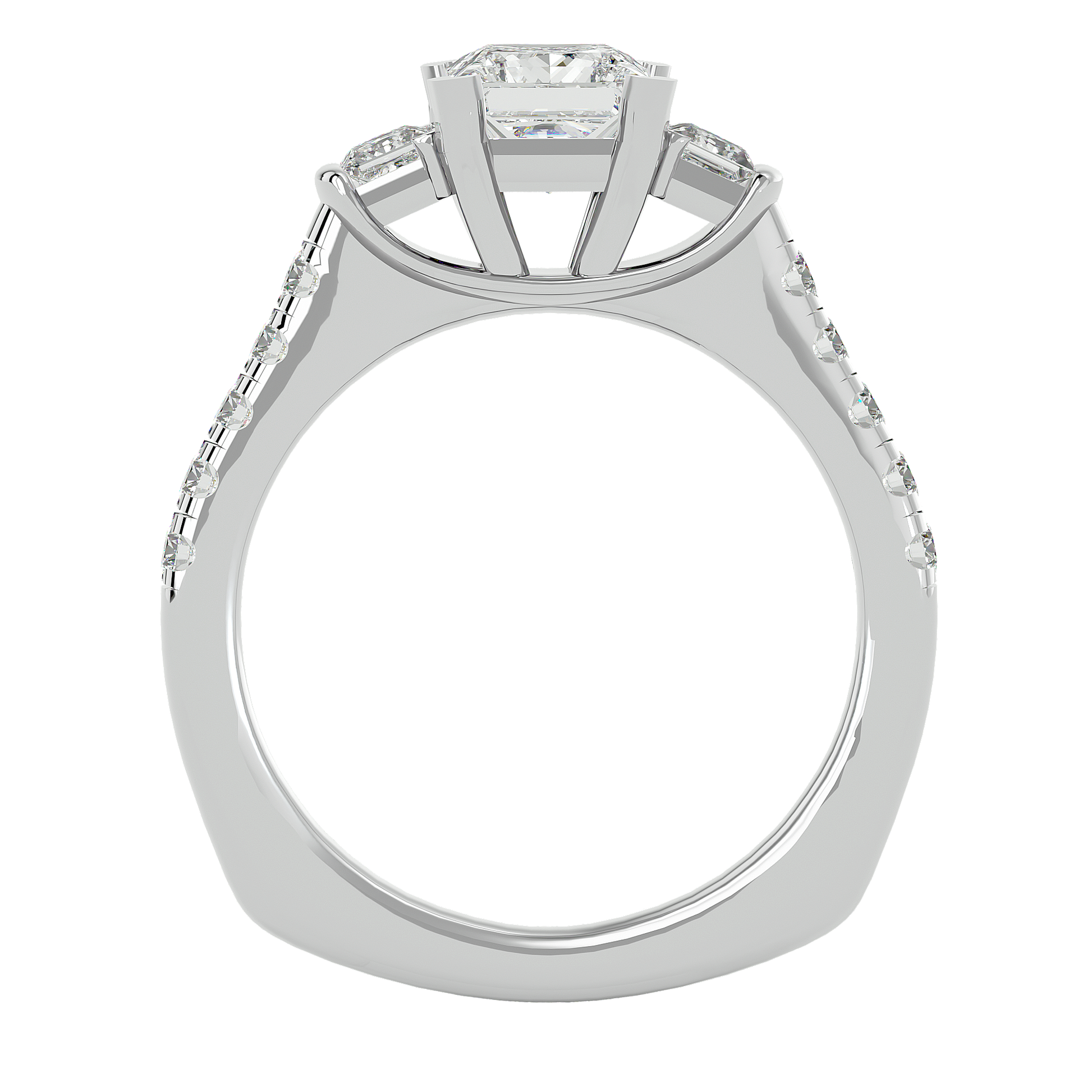 This exquisite Trilune three-stone ring showcases a stunning 1.72 Ct princess-cut diamond set in 6.58 grams of finely crafted gold.