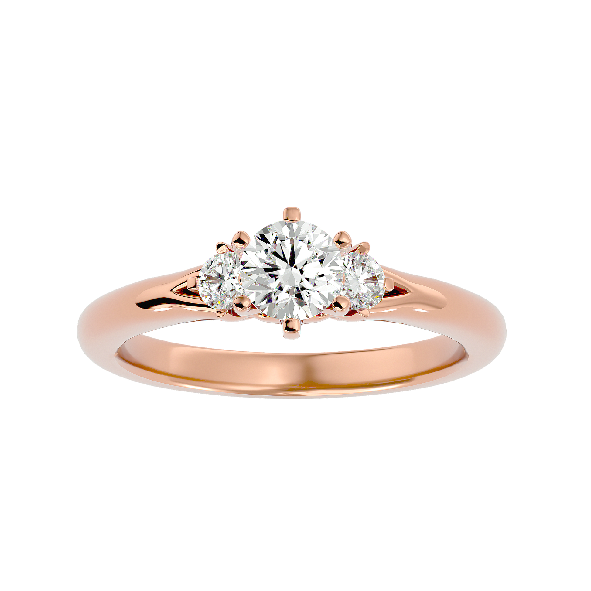 Trilune Beautiful Three-Stone - 0.73 Ct Round Diamond Gold Ring
