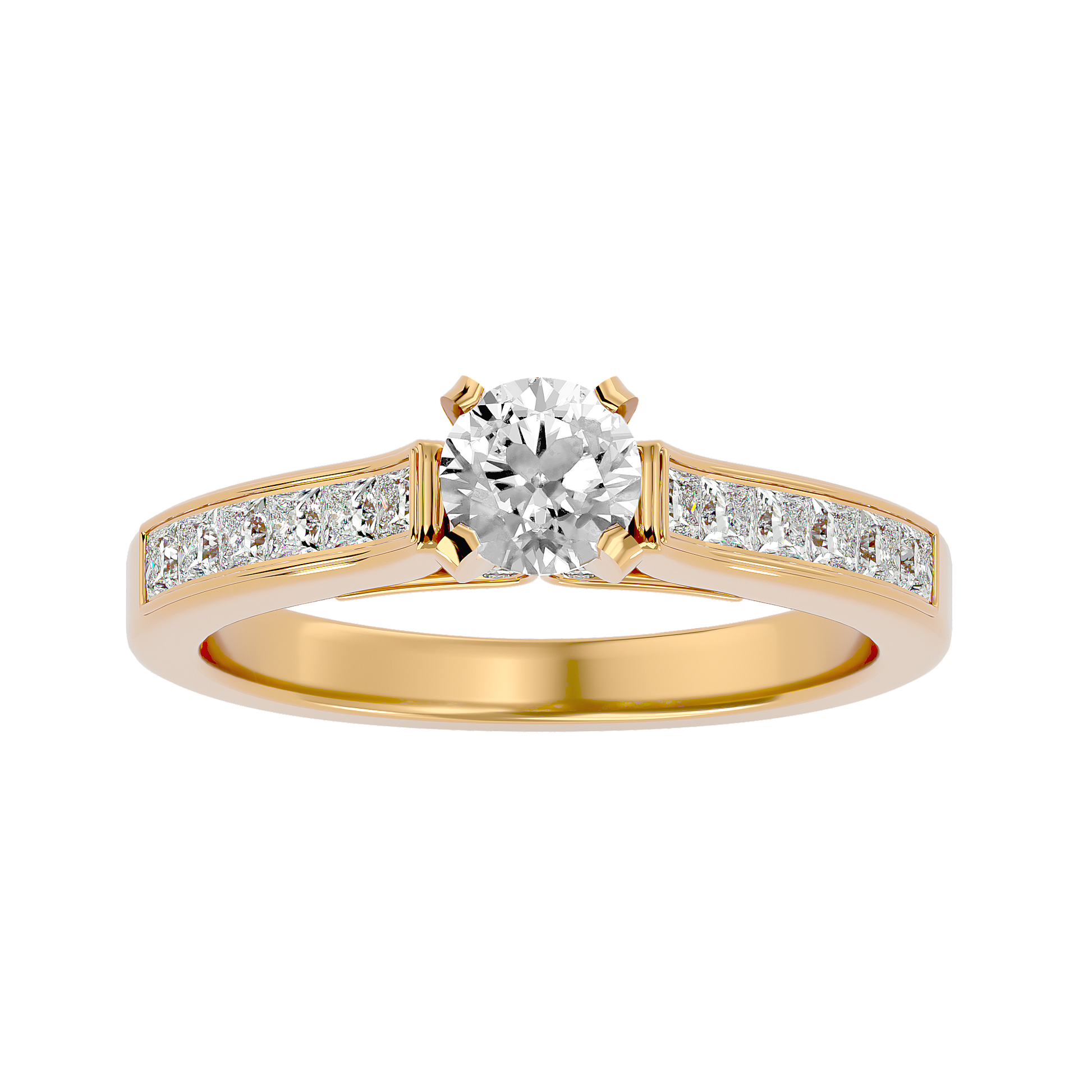 Elevate your elegance with the Lumière Beautiful Halo gold ring, featuring a captivating 1.52-carat round diamond.