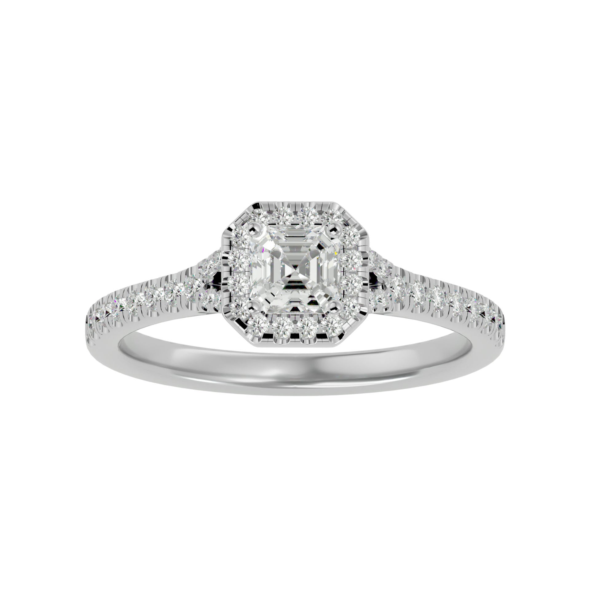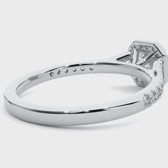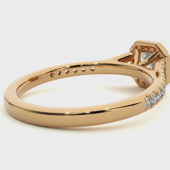 Its exquisite halo design enhances the diamond's brilliance, making it an ideal choice for those who appreciate understated sophistication and enduring beauty.