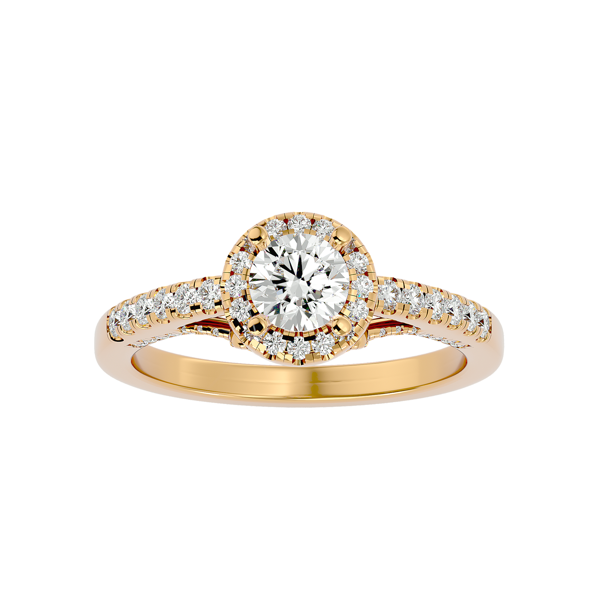 Lumière Beautiful Halo- 0.98 Ct Round Diamond Gold RIng