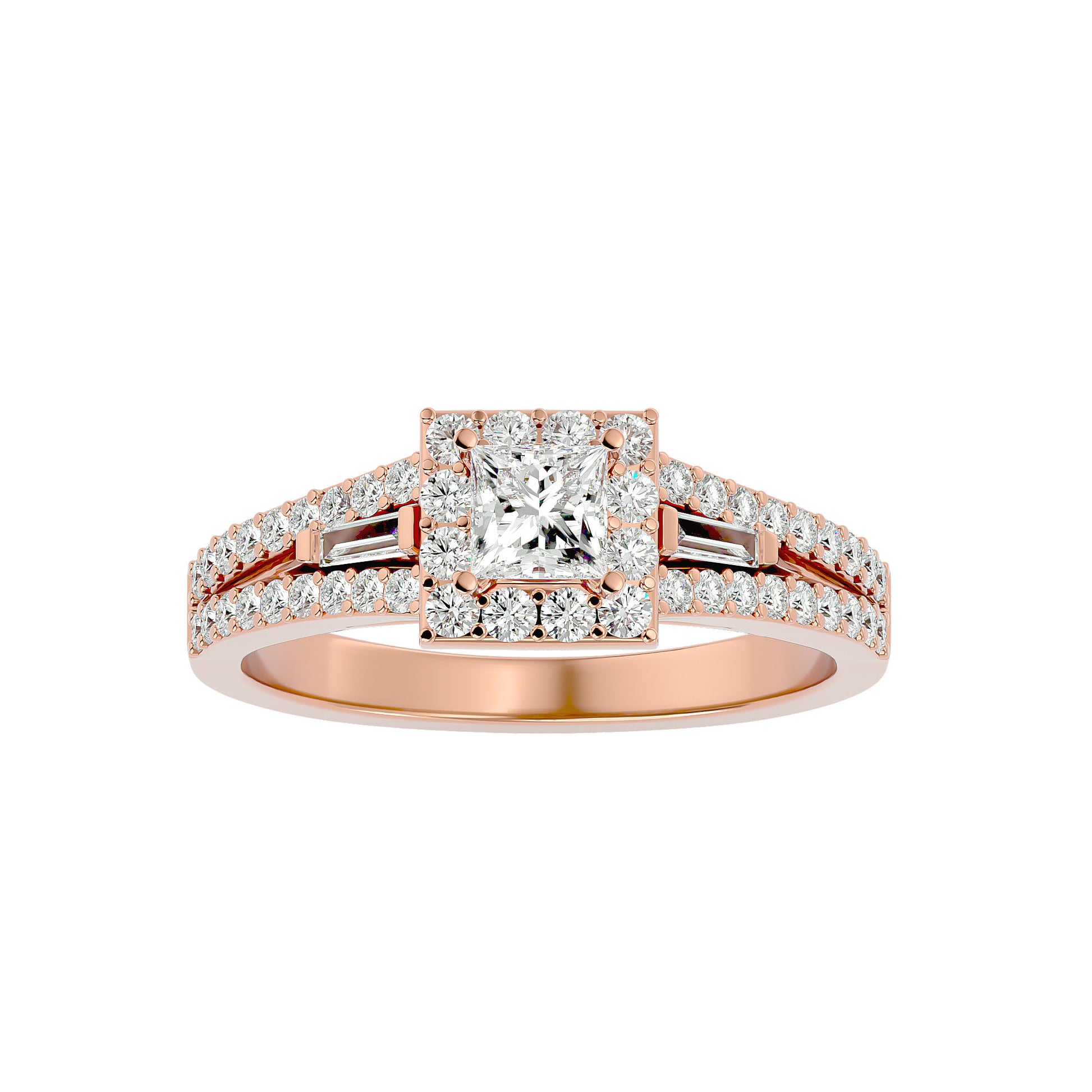 This exquisite gold ring features a 0.96 ct princess-cut diamond, elegantly set to capture and reflect light with every movement.