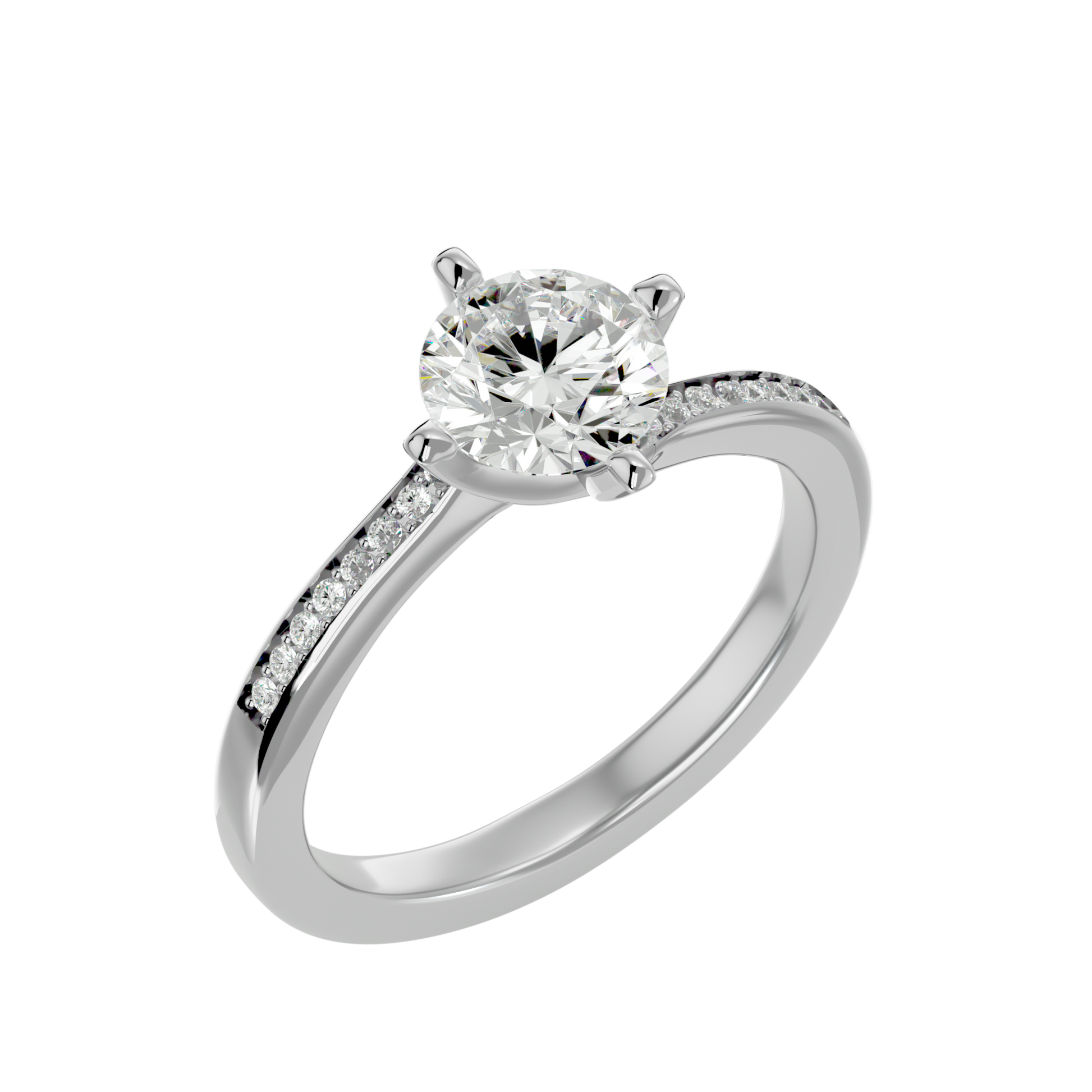 With charming round diamond accents crafted just so, and a sparkle grade of E-F color and VS+ clarity, this ring is all about making you shine bright and playfully steal the spotlight.
