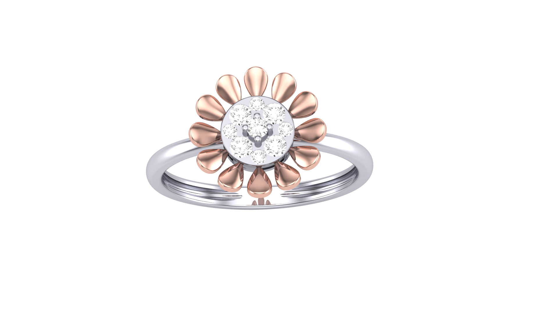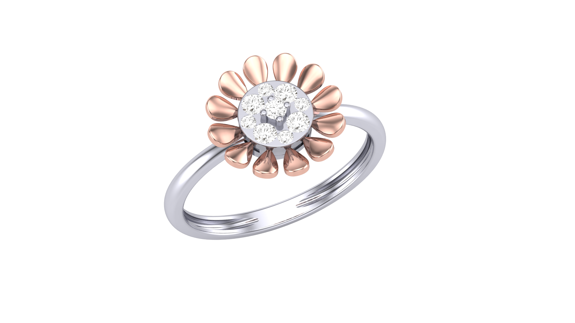 Celebrate nature’s elegance with this enchanting floral diamond ring, crafted in a harmonious blend of rose and white gold.