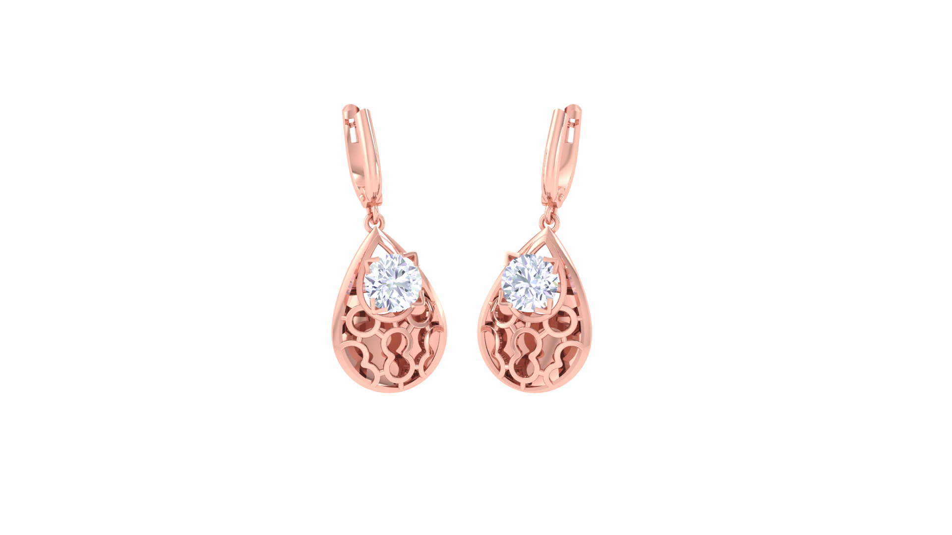 Ornate Teardrop Rose Gold Hoop Earrings - 0.64 Ct Diamond Accents