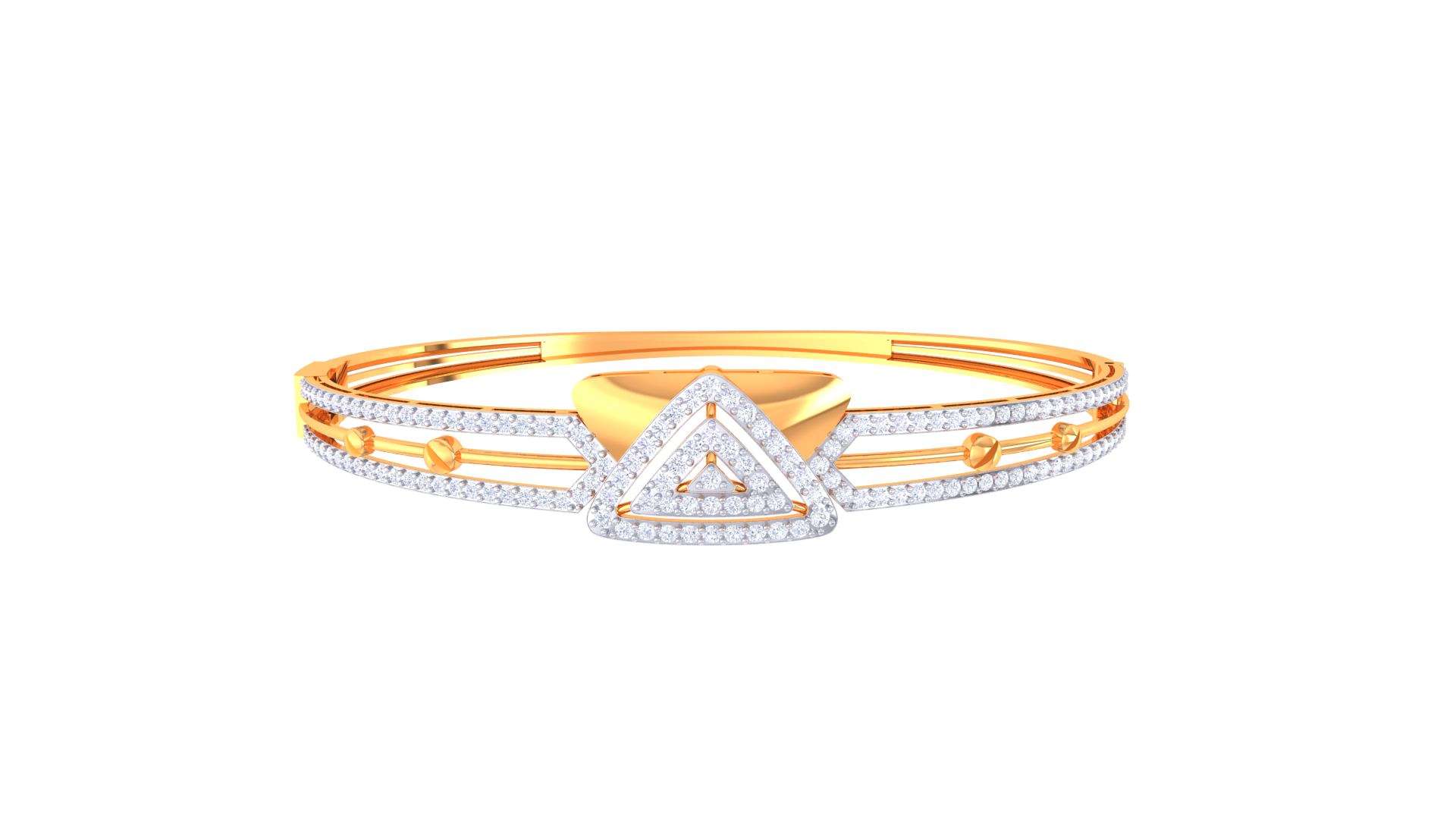 A bold expression of geometric elegance, this handcrafted bracelet features a striking triangular centerpiece encrusted with 0.99 carats of brilliant-cut diamonds.