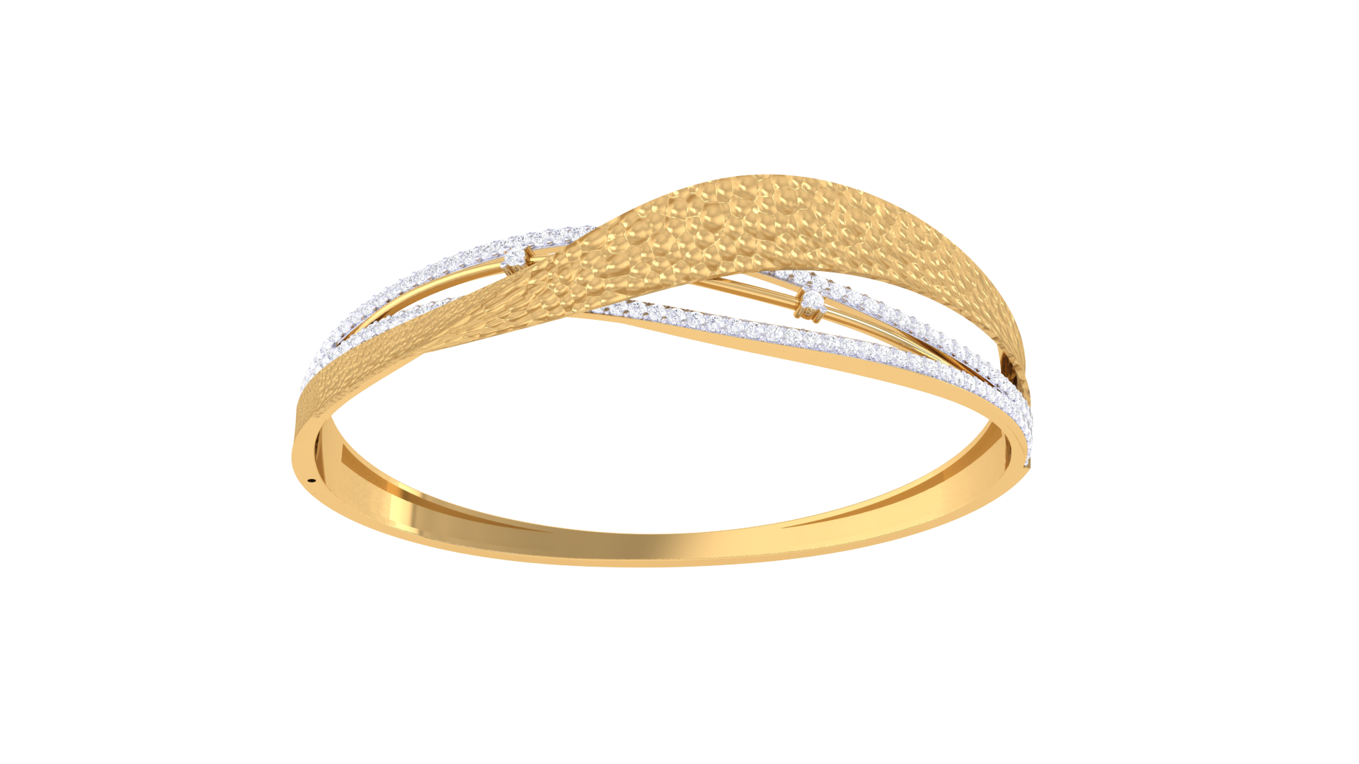 A seamless blend of elegance and contrast, this dual-tone bangle is crafted from 12.96 grams of radiant gold, gracefully intertwined with sleek silver bands.