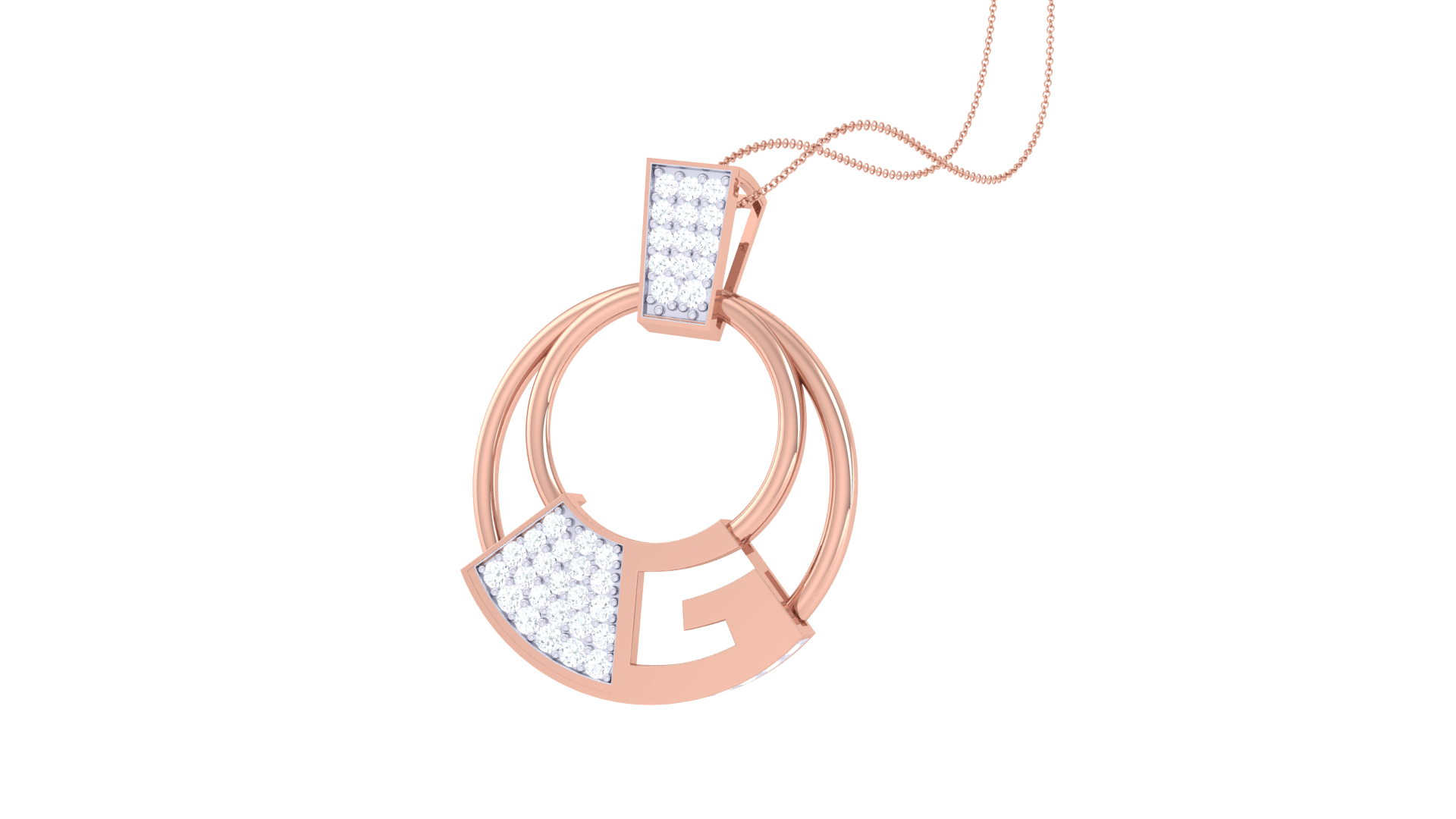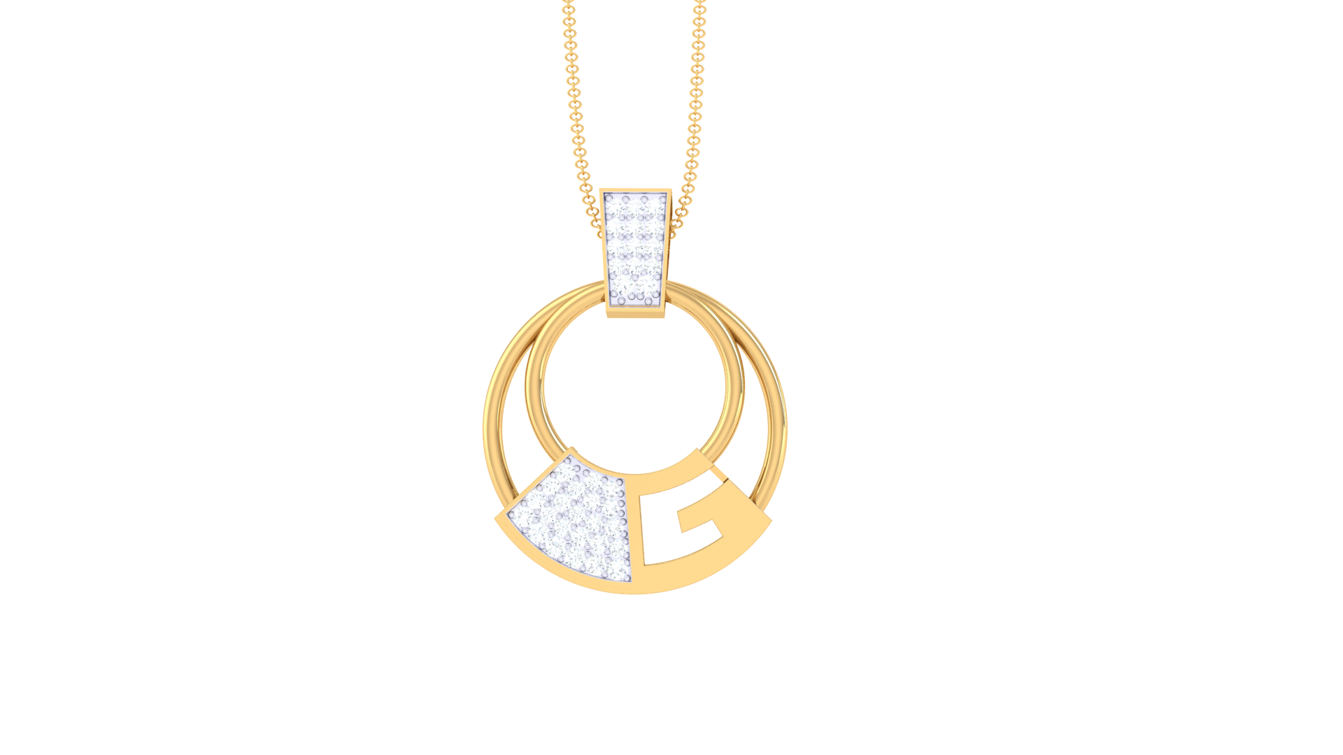 Crafted in 2.45 grams of luminous 18K gold, this geometric pendant necklace showcases a bold circular silhouette accented with a stylized “G” motif.