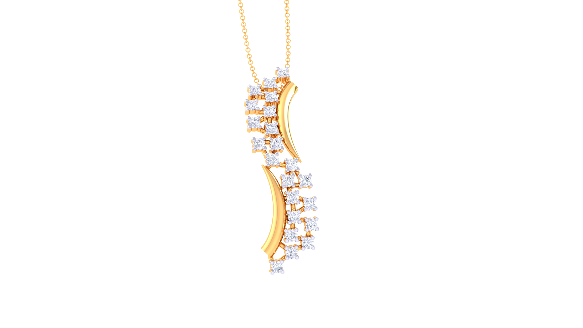 0.18 Ct - Linear Luxe Diamond Pendant with Flowing Gold Bands