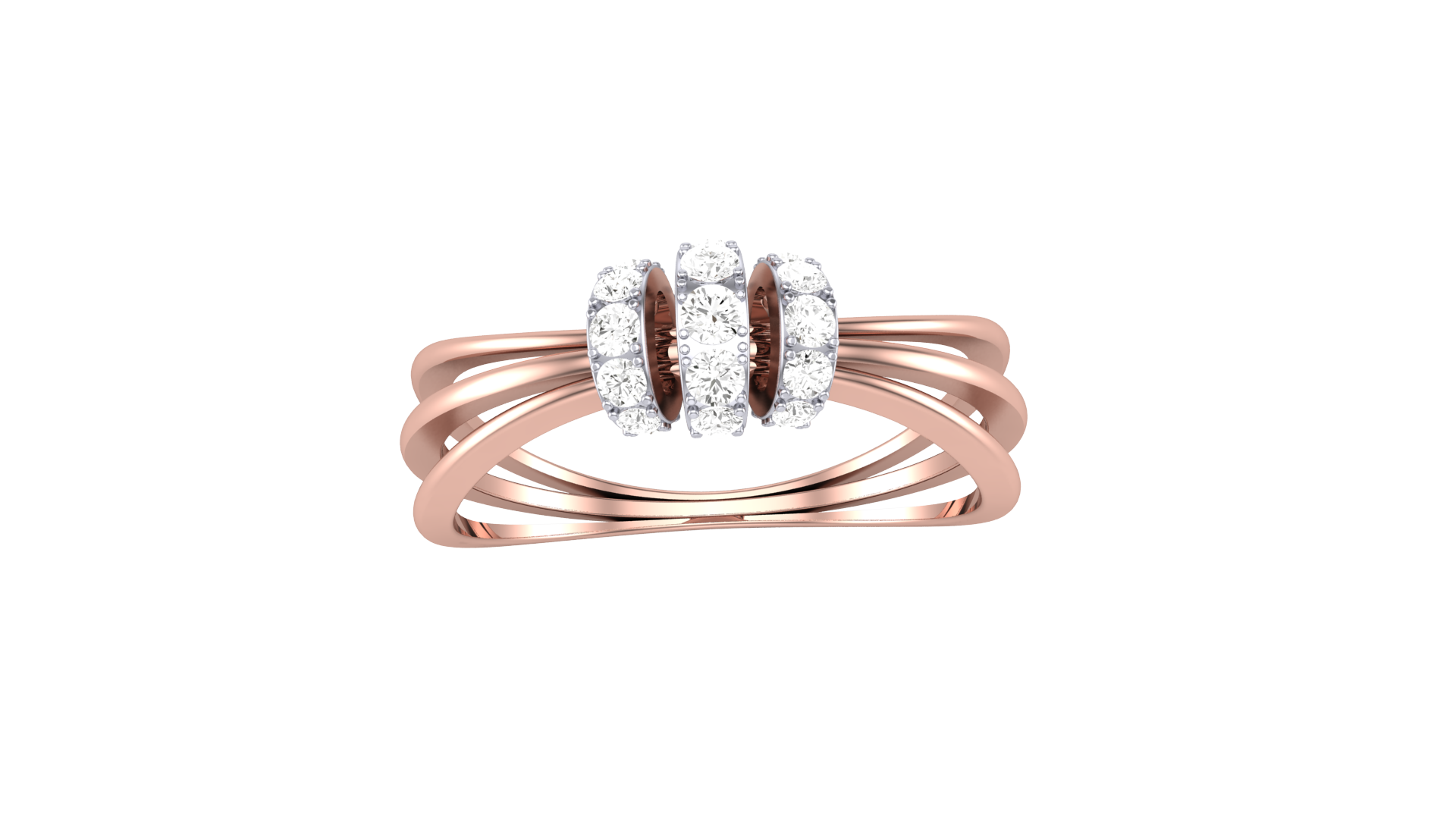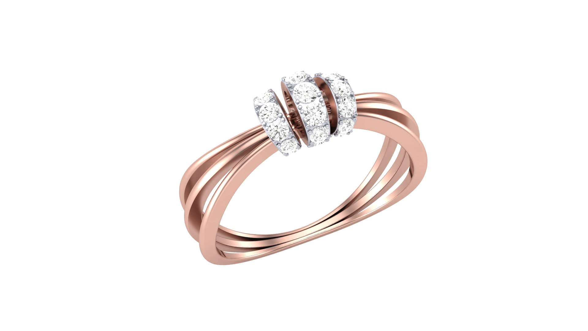 Eclat Mosaique Three Petal Rose Gold Ring - 0.24 Ct Round Diamonds Detailing