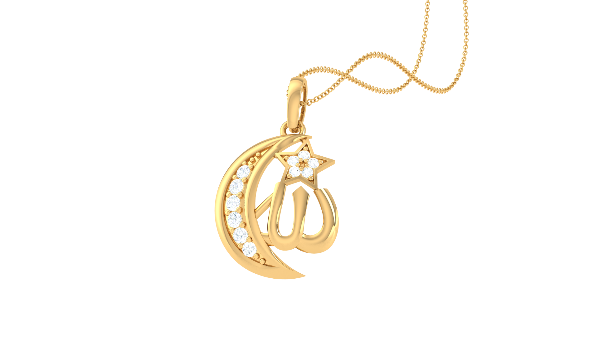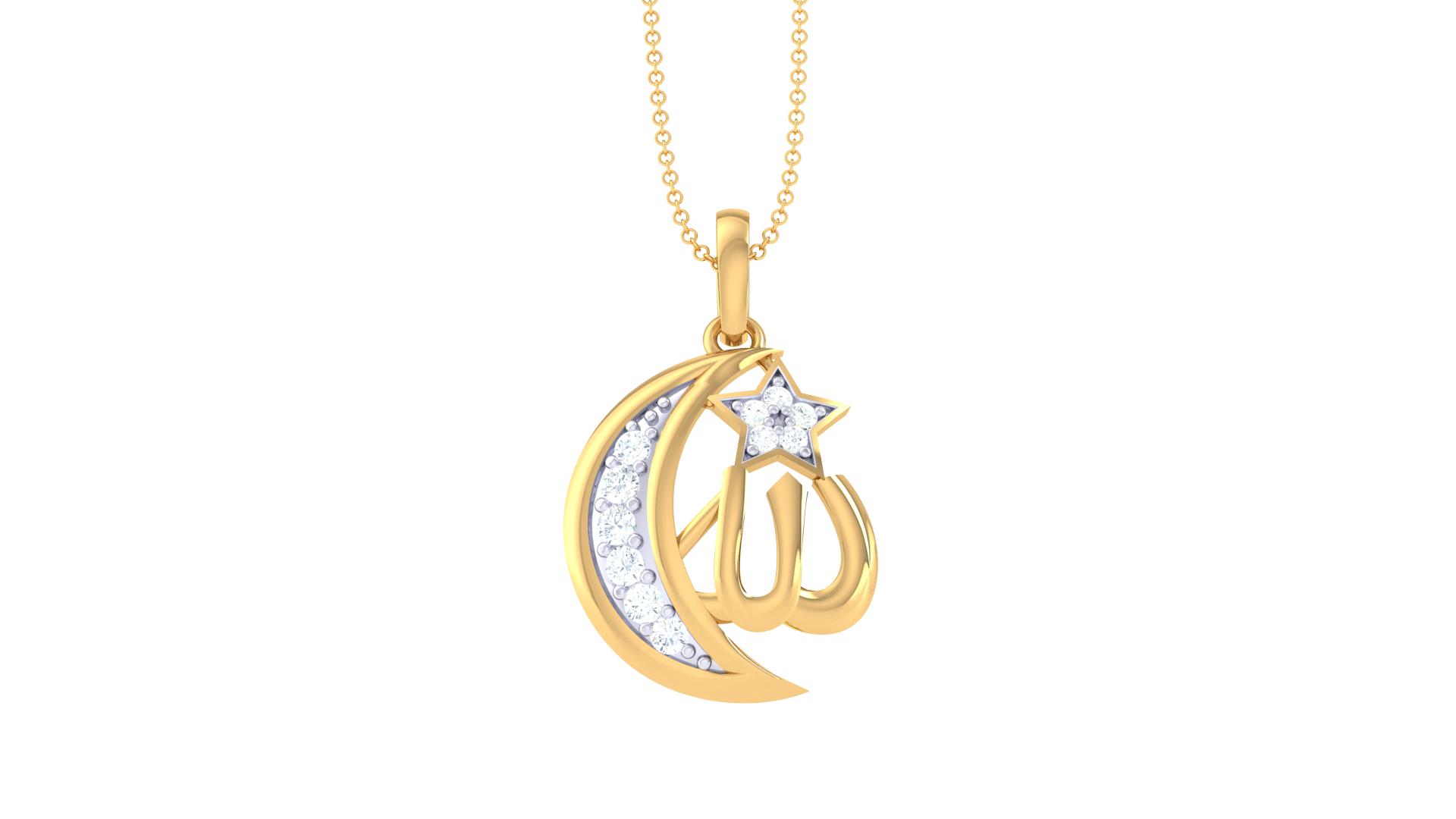 Crescent Moon & Allah Calligraphy Pendant In Gold - 0.10 Ct Diamonds
