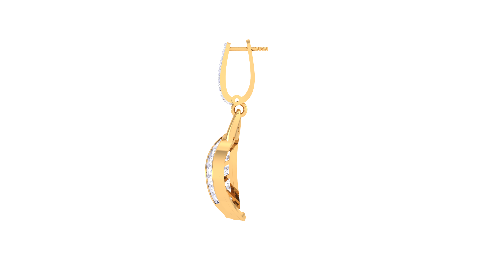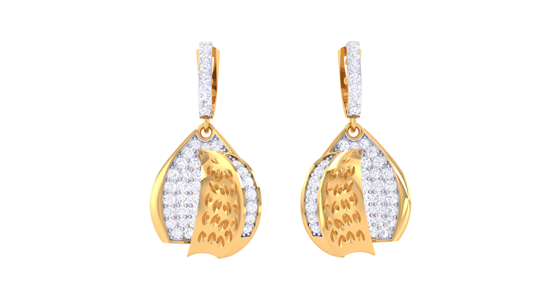 Crafted in 4.80 grams of polished gold, these teardrop earrings feature a diamond-encrusted core framed by a sculpted leaf-like overlay.