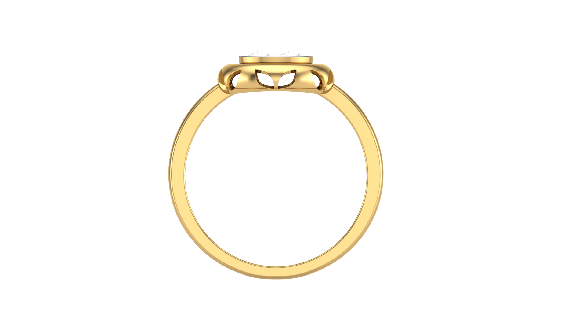 The raised circular bezel setting frames the diamonds in a luminous embrace, enhancing their sparkle while offering a sleek, secure silhouette.