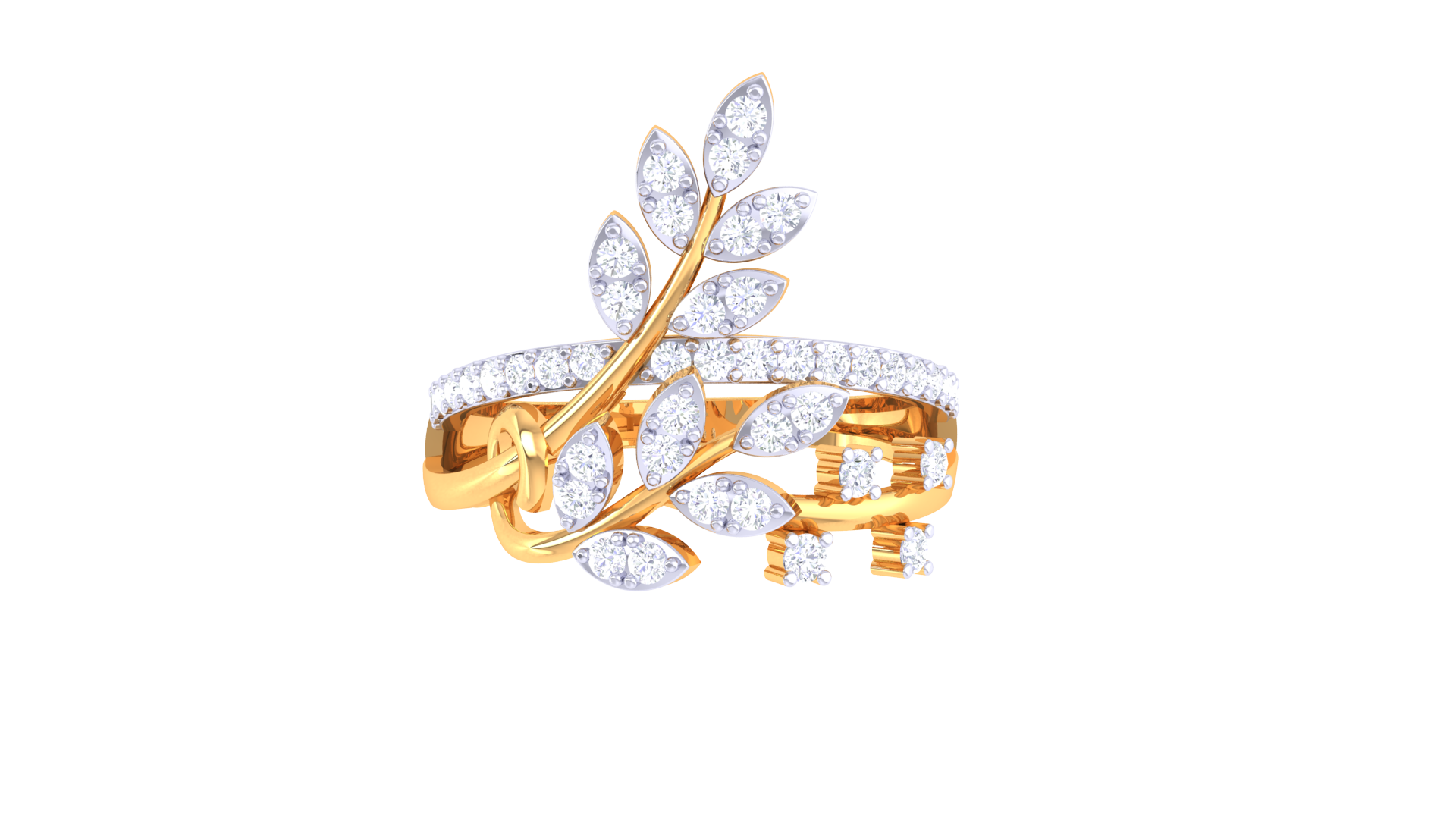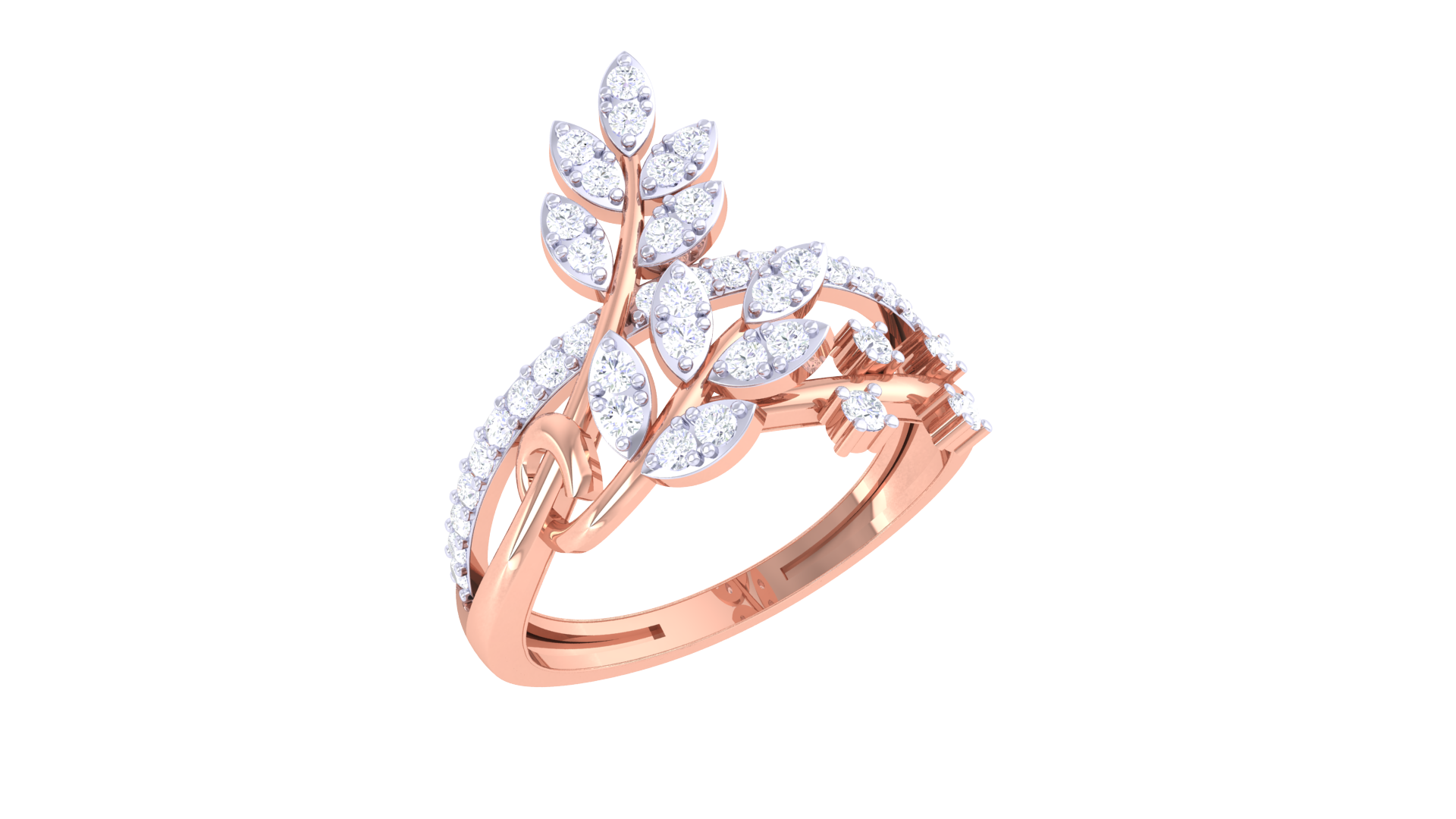 Lumiere Encrusted Leaf Ring In Lustrous Gold - 0.38 Ct Brilliant Cut Diamonds