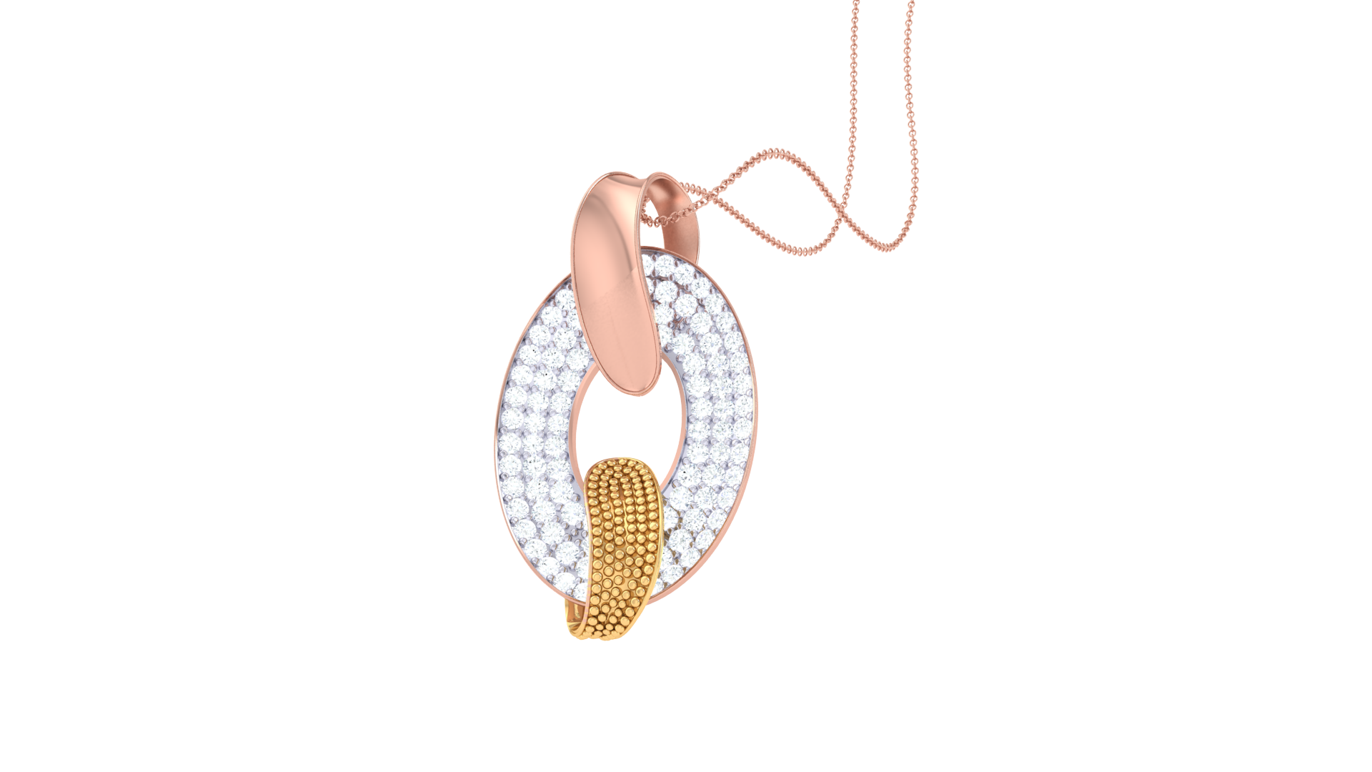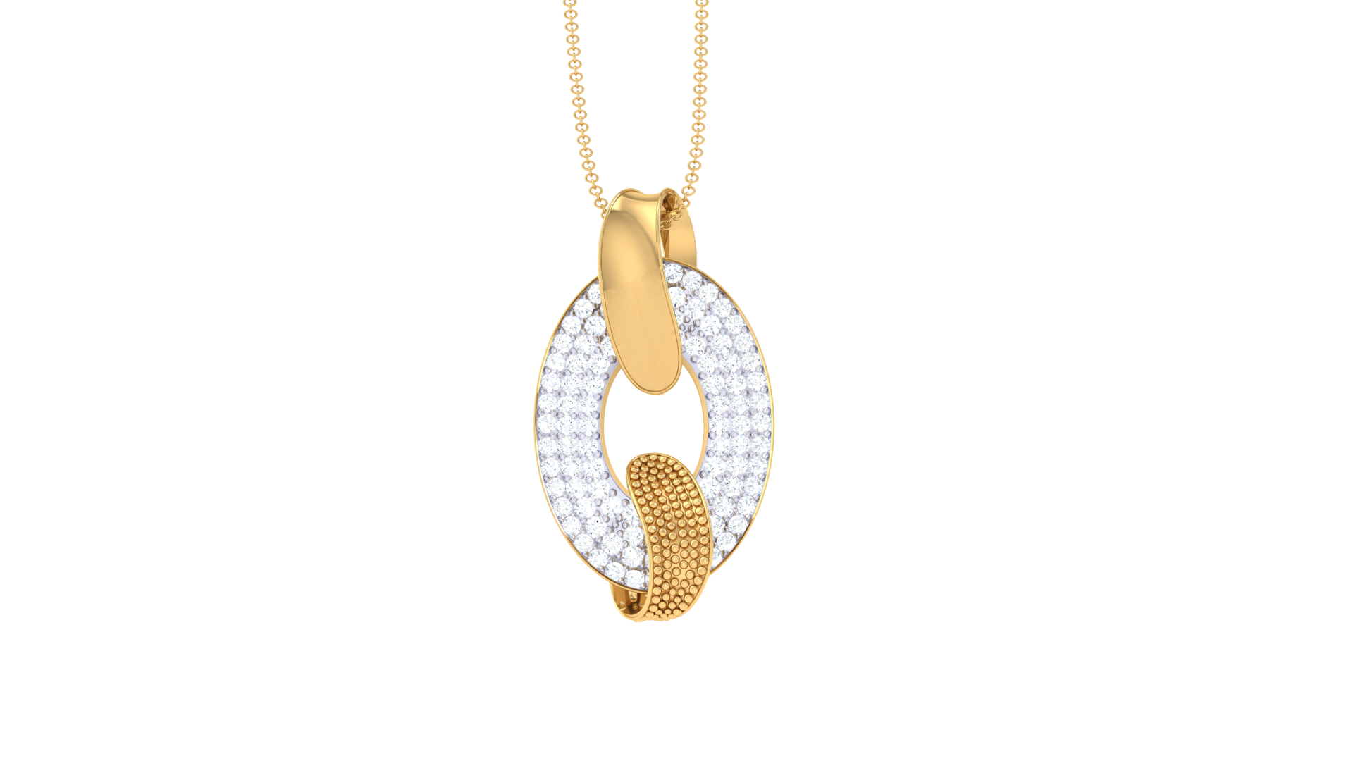 Textured Oval Pendant In Gold – 0.73 Ct Pave Set Diamonds