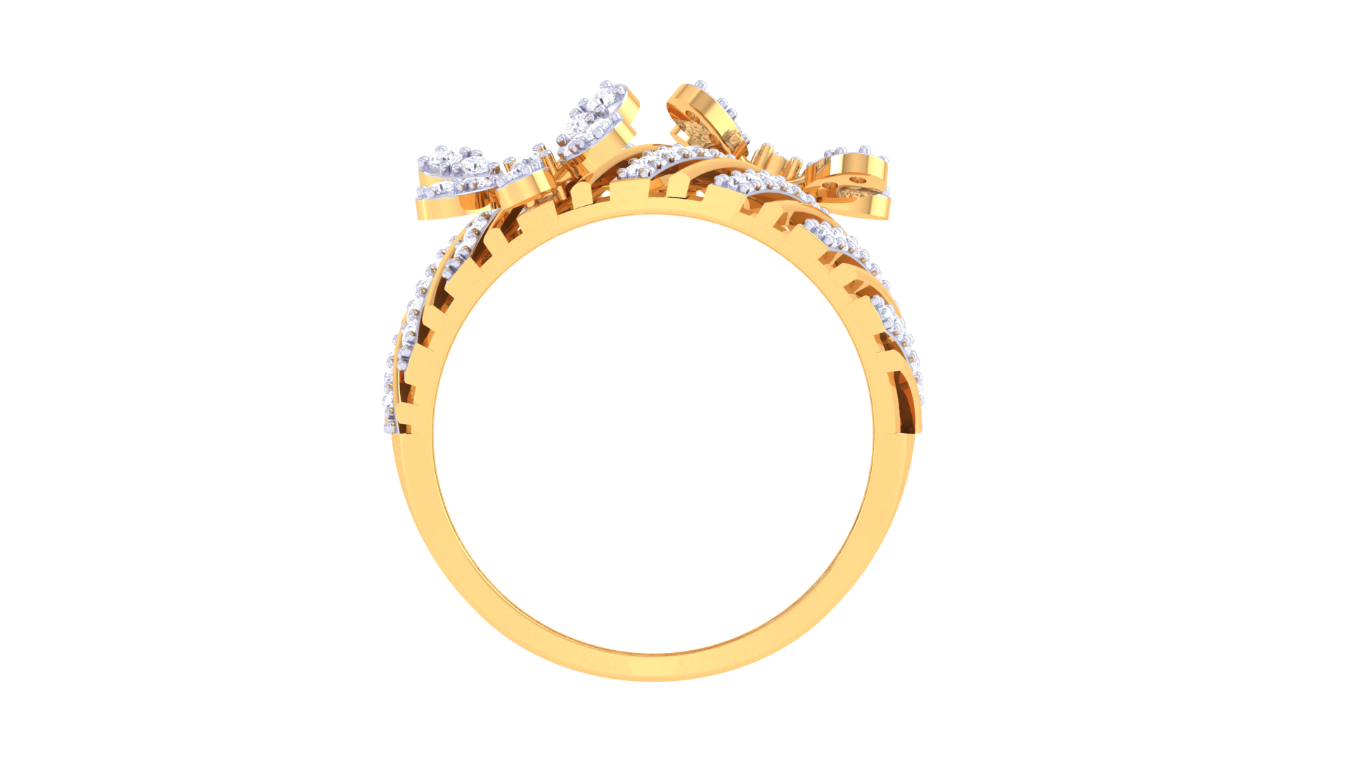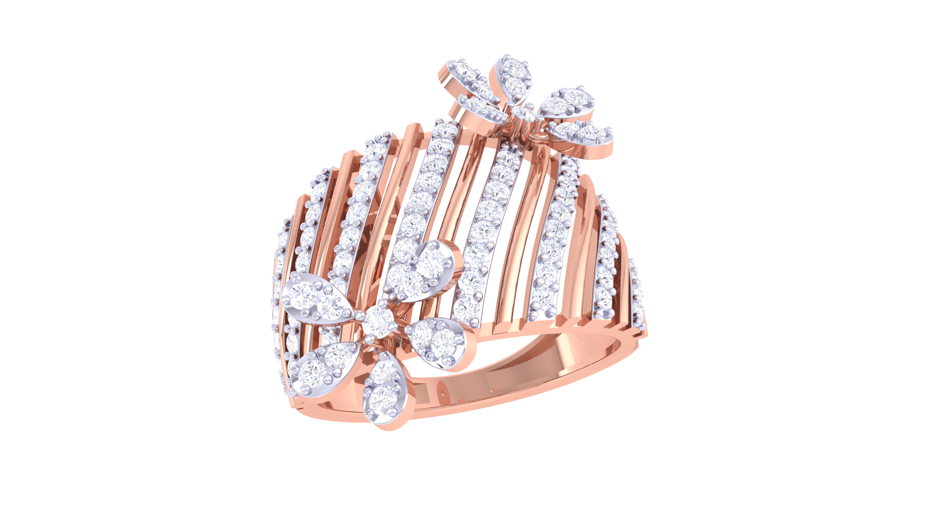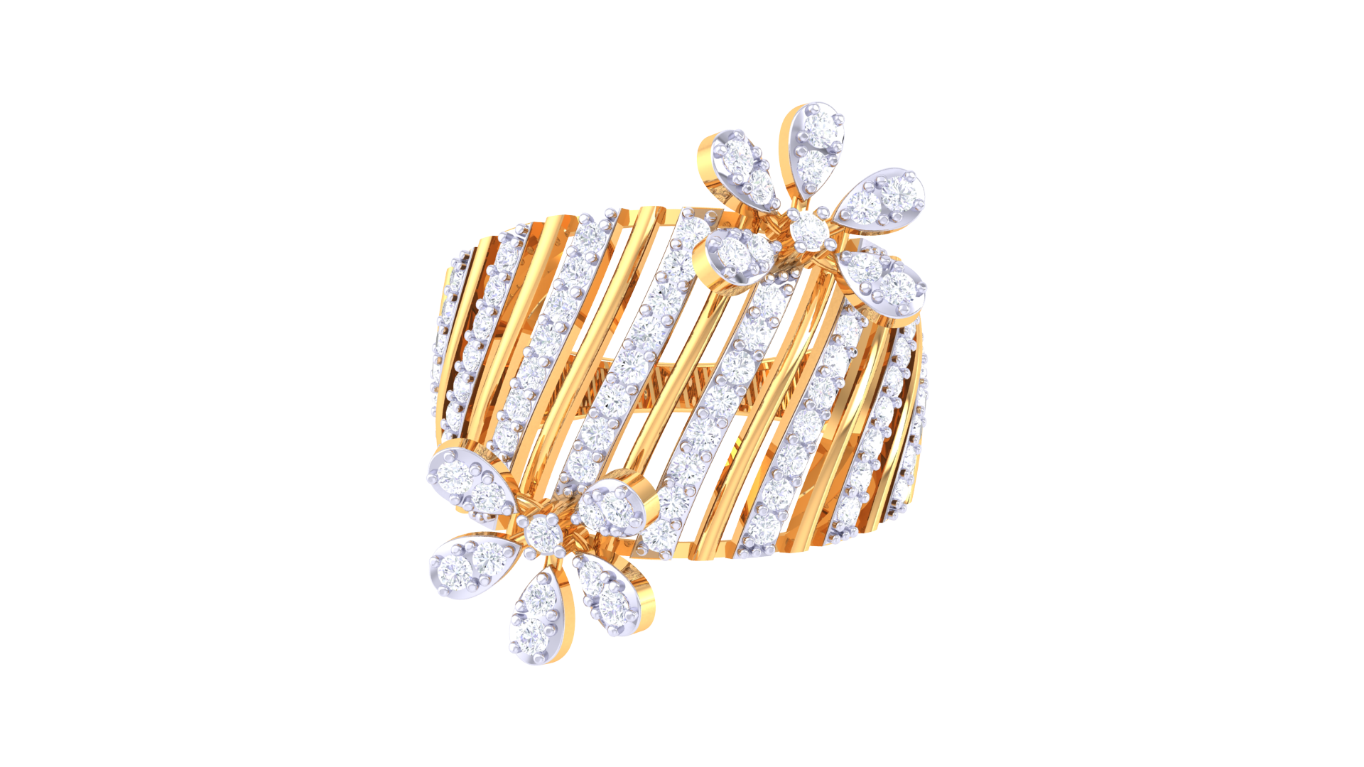Iconique Floral Stripe Gold Ring - 0.72 Ct Sparking Diamond Petals