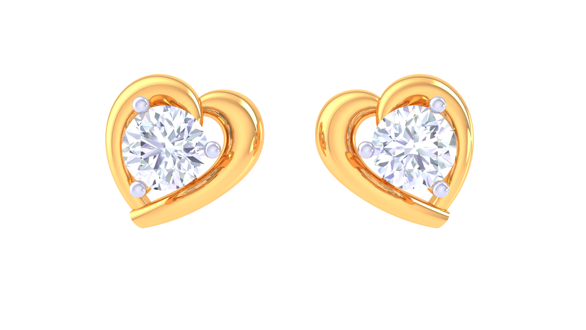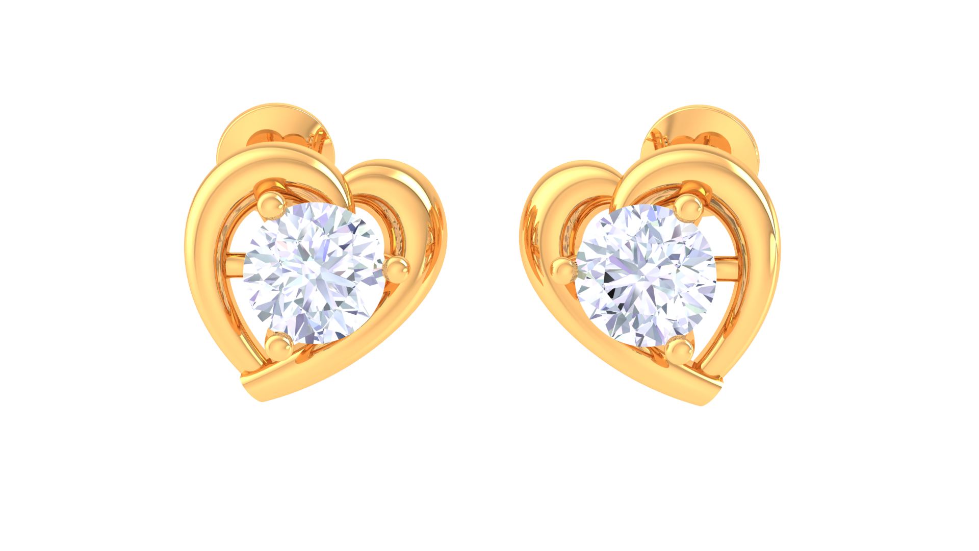 Each earring features a brilliant 0.41 ct round-cut diamond nestled at the center of a sculpted heart, radiating warmth and sophistication.