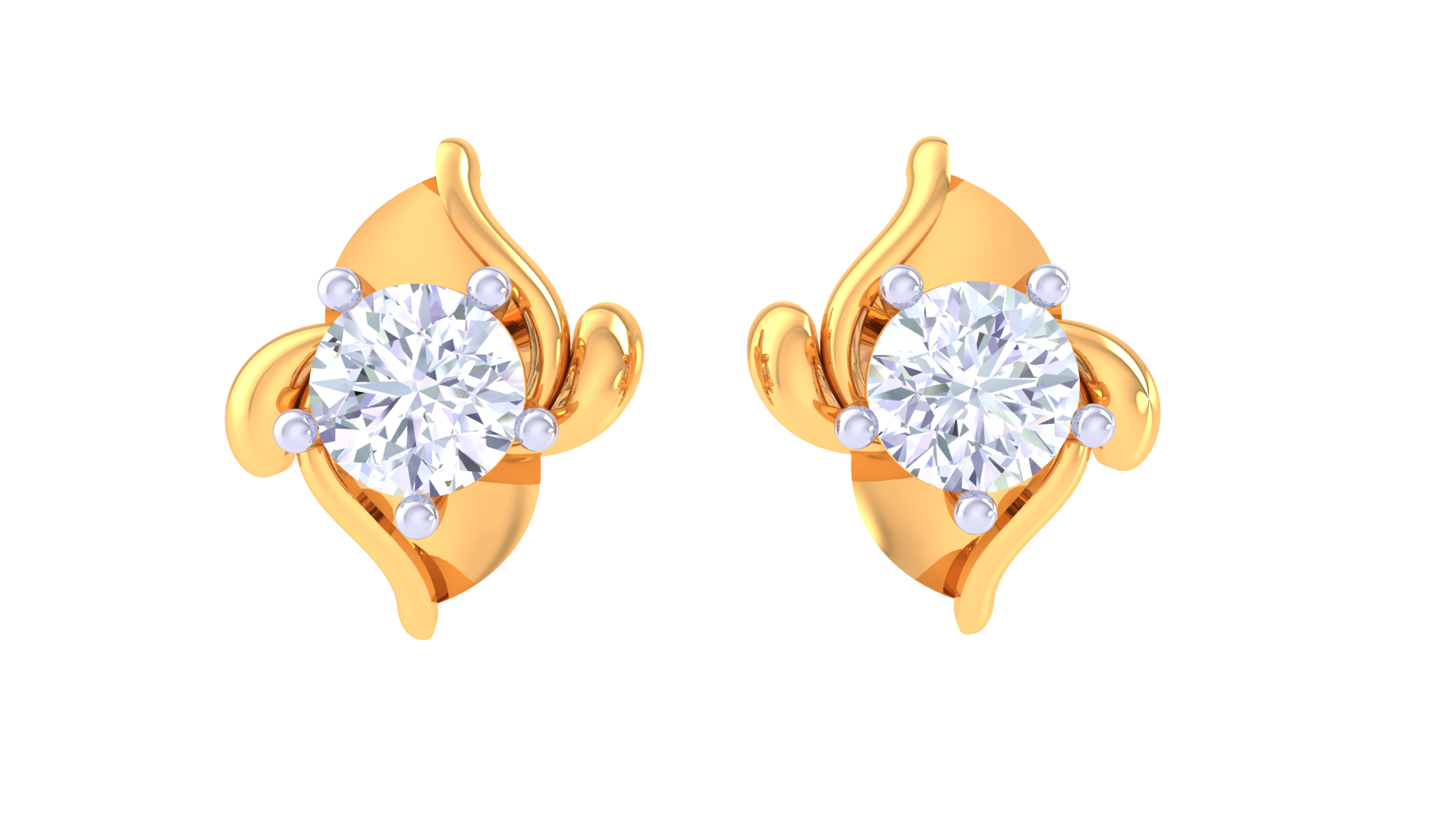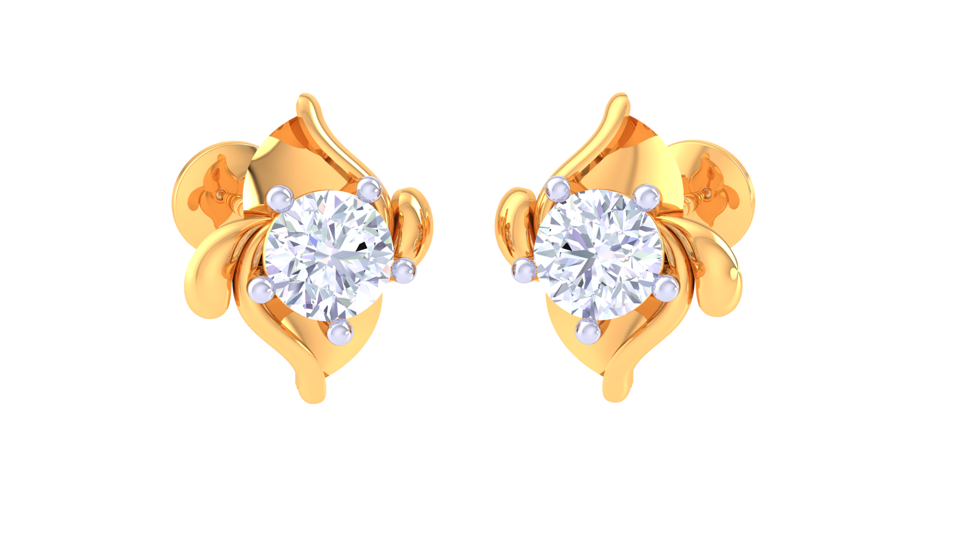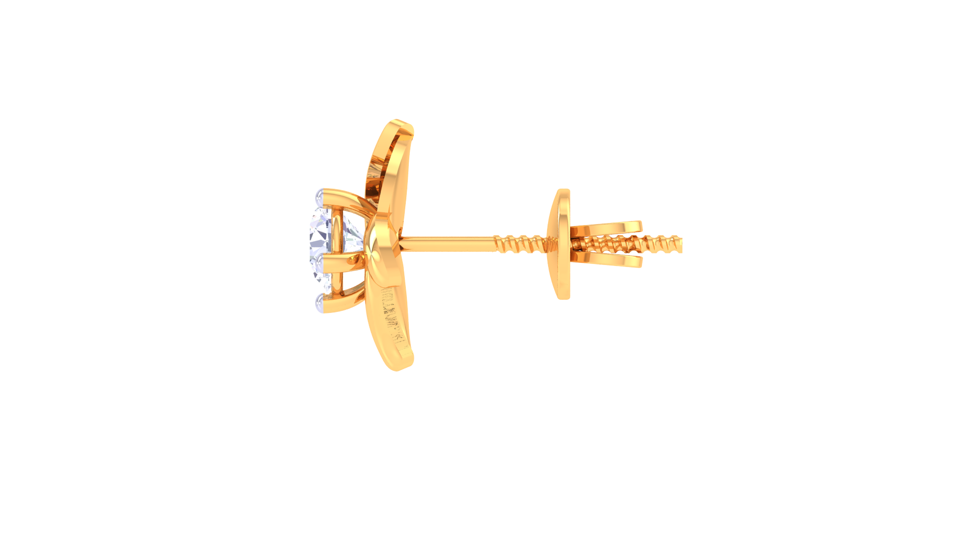 Gracefully sculpted in 1.58 grams of polished gold, these floral-inspired stud earrings showcase a radiant 0.36 carat round-cut diamond at their heart.