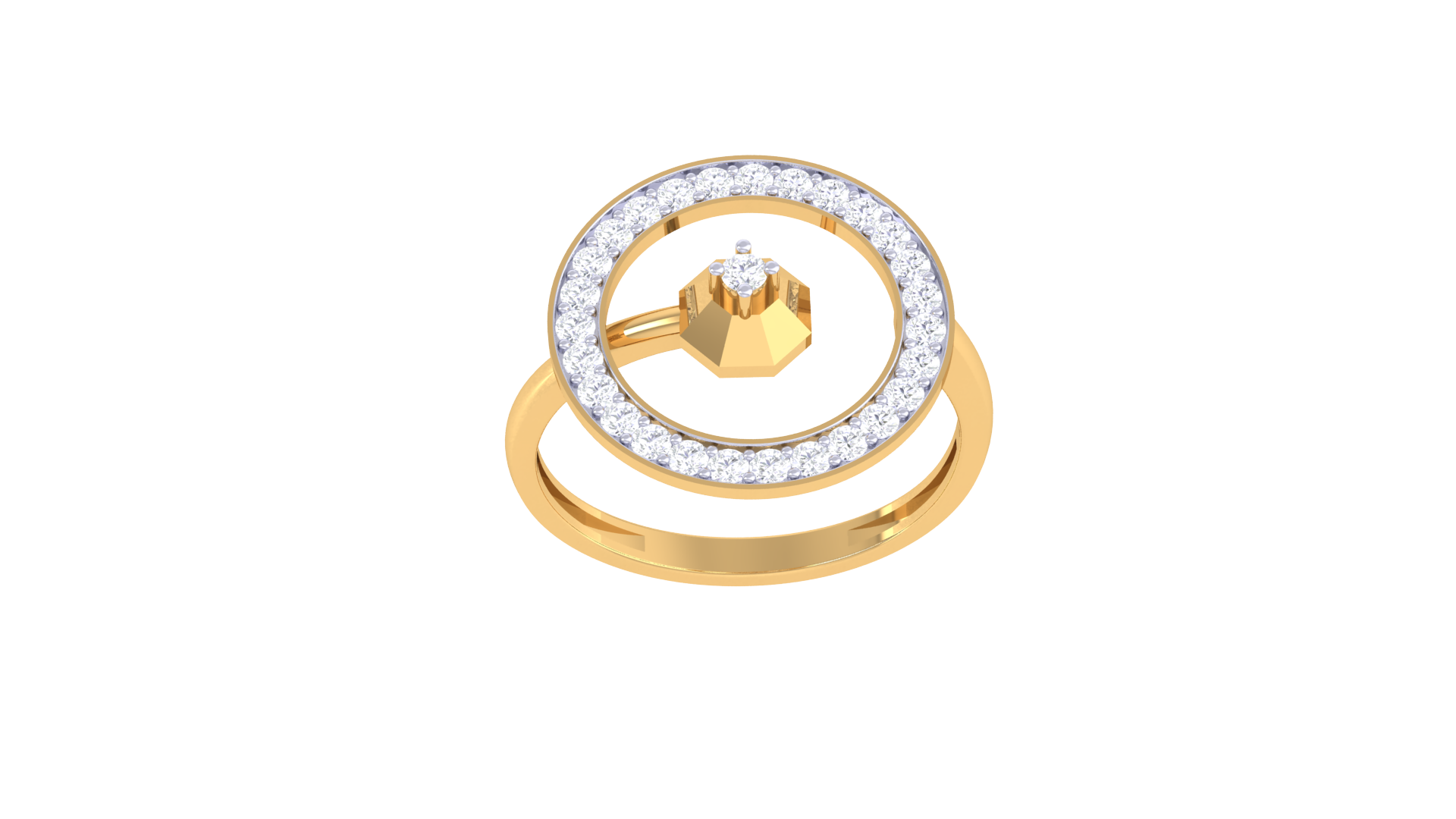 Sculpted in 2.23 grams of luminous gold, this captivating ring merges architectural precision with radiant elegance.