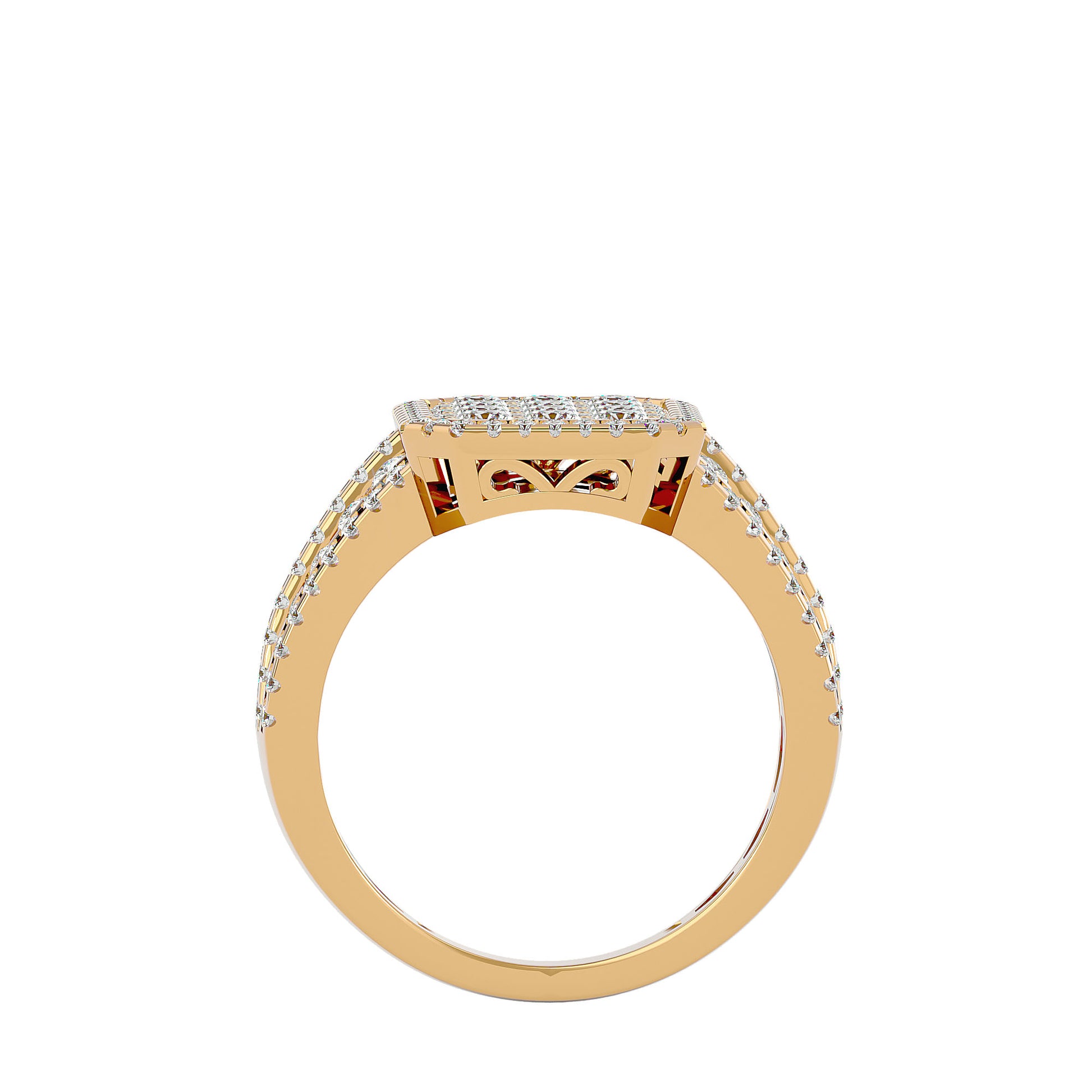 This men's ring features a refined design crafted from 4.32 grams of gold, accentuated by 1.53 carats of round-cut diamonds.