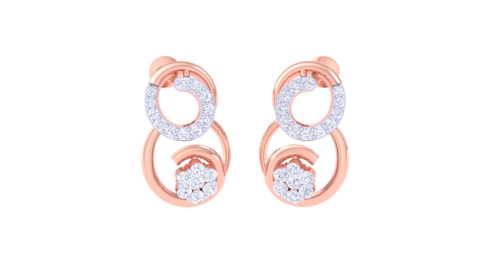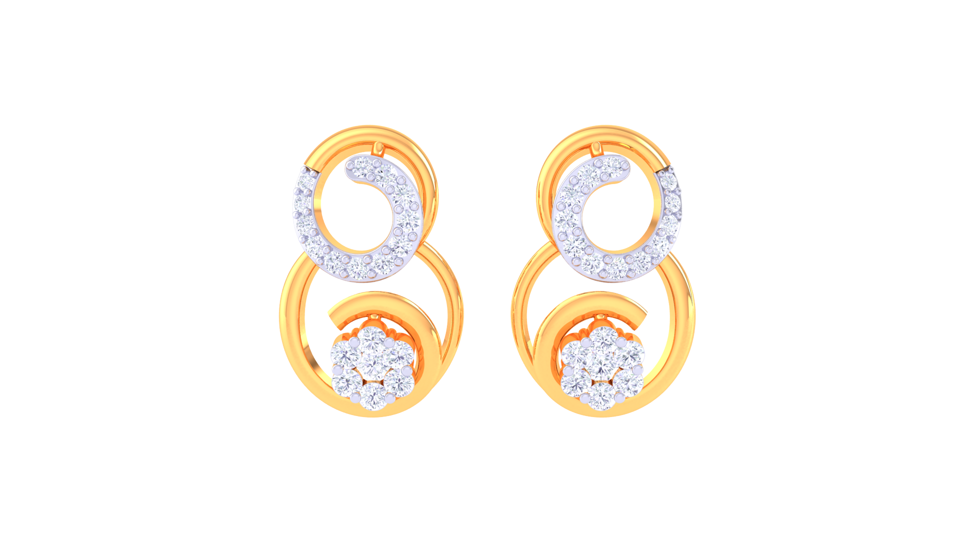 The upper open circle shimmers with a delicate arrangement of diamonds, while the lower gold ring cradles a floral cluster of brilliance, totaling 0.33 carats.