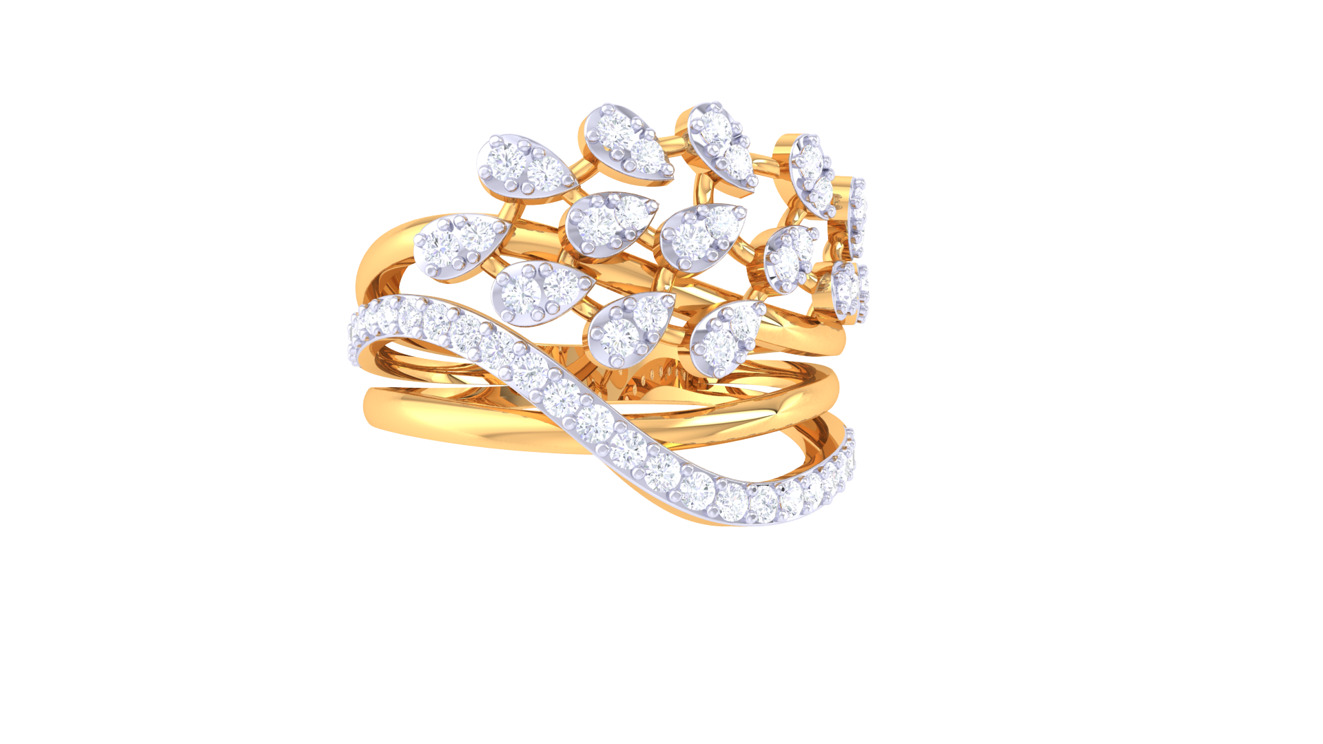 Lumiere Verdant Cascade Ring In Interwoven Gold – 0.40 Ct Dazzling Diamonds