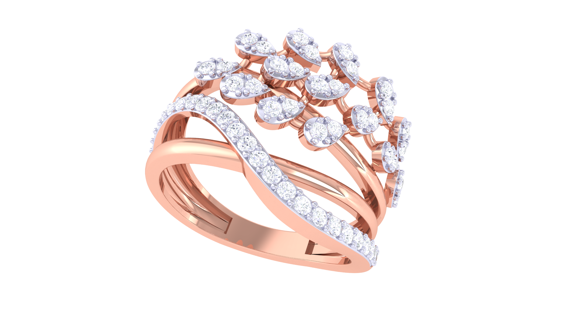 Crafted to captivate from every angle, this ring blends fluid design with radiant luxury—perfect for those who seek bold beauty with refined sophistication.