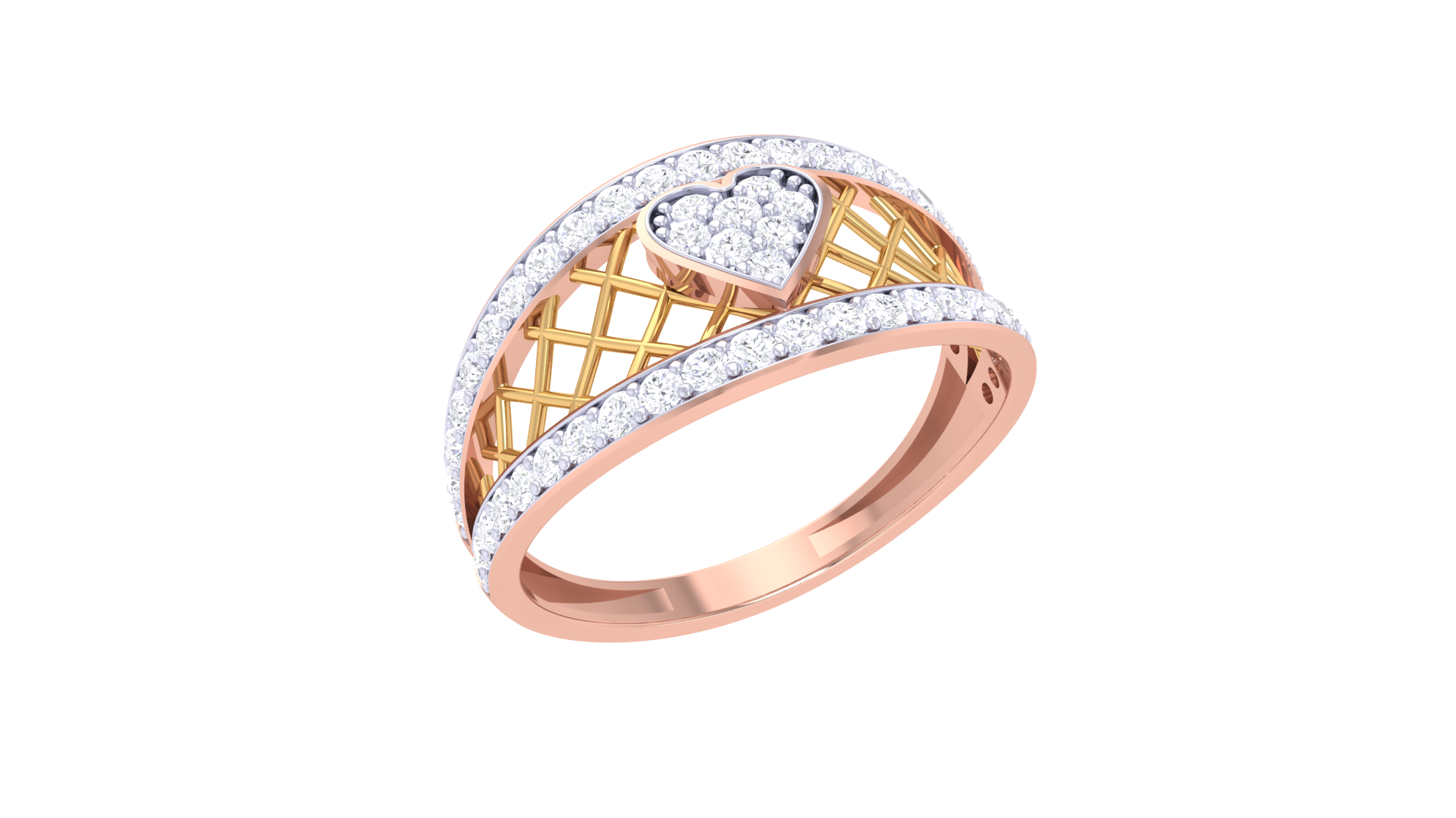Eclat Lattice Heart 0.42 Ct Diamond Ring In Gold - Romantic Brilliance
