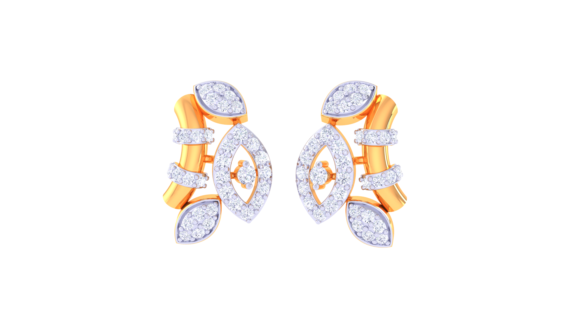 Symmetric Marquise Gold Stud Earrings - 0.57 Ct Diamond Embellishments