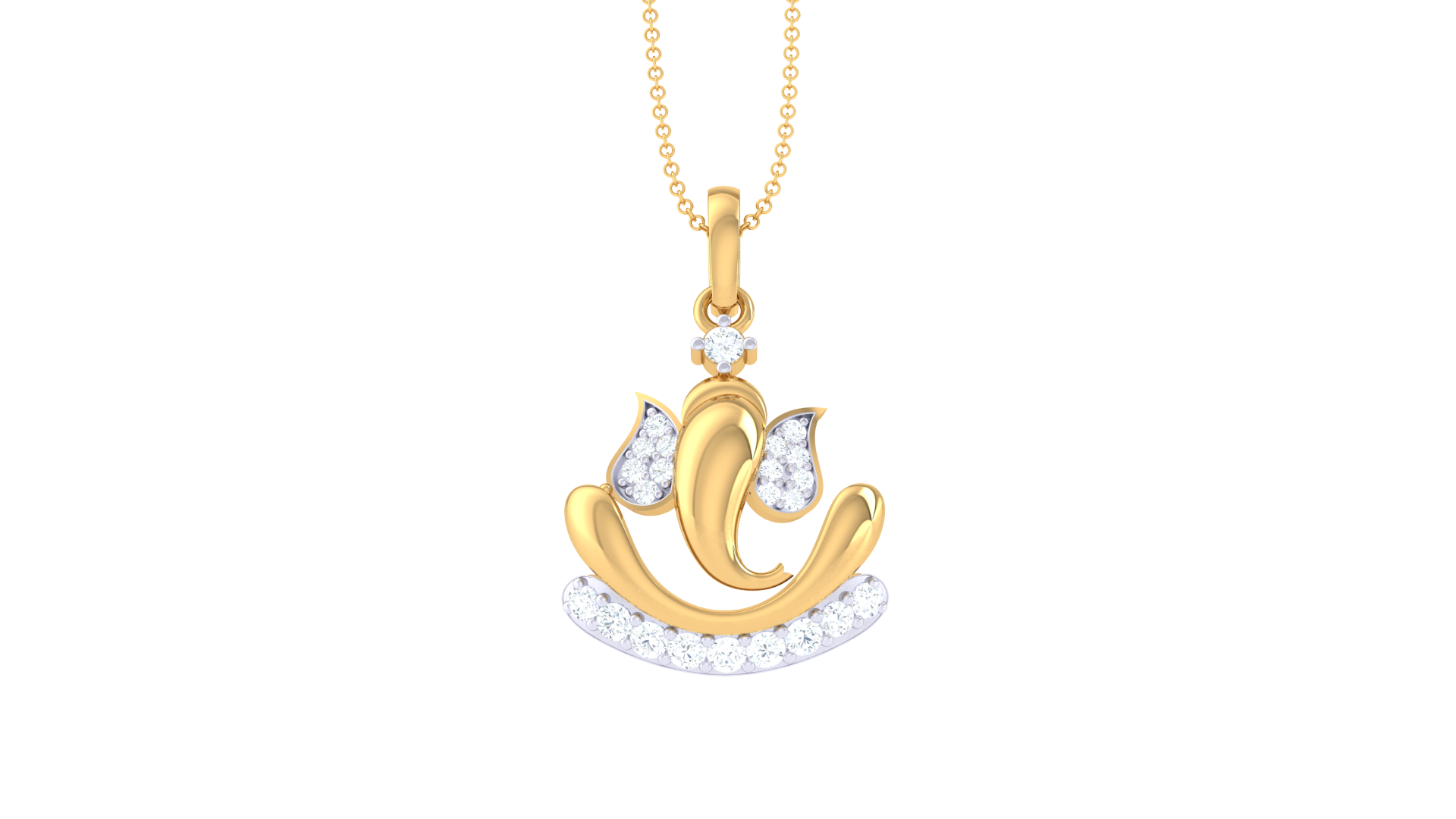 Mangal Murti Ganesha Pendant In Gold – 0.18 Ct Diamonds