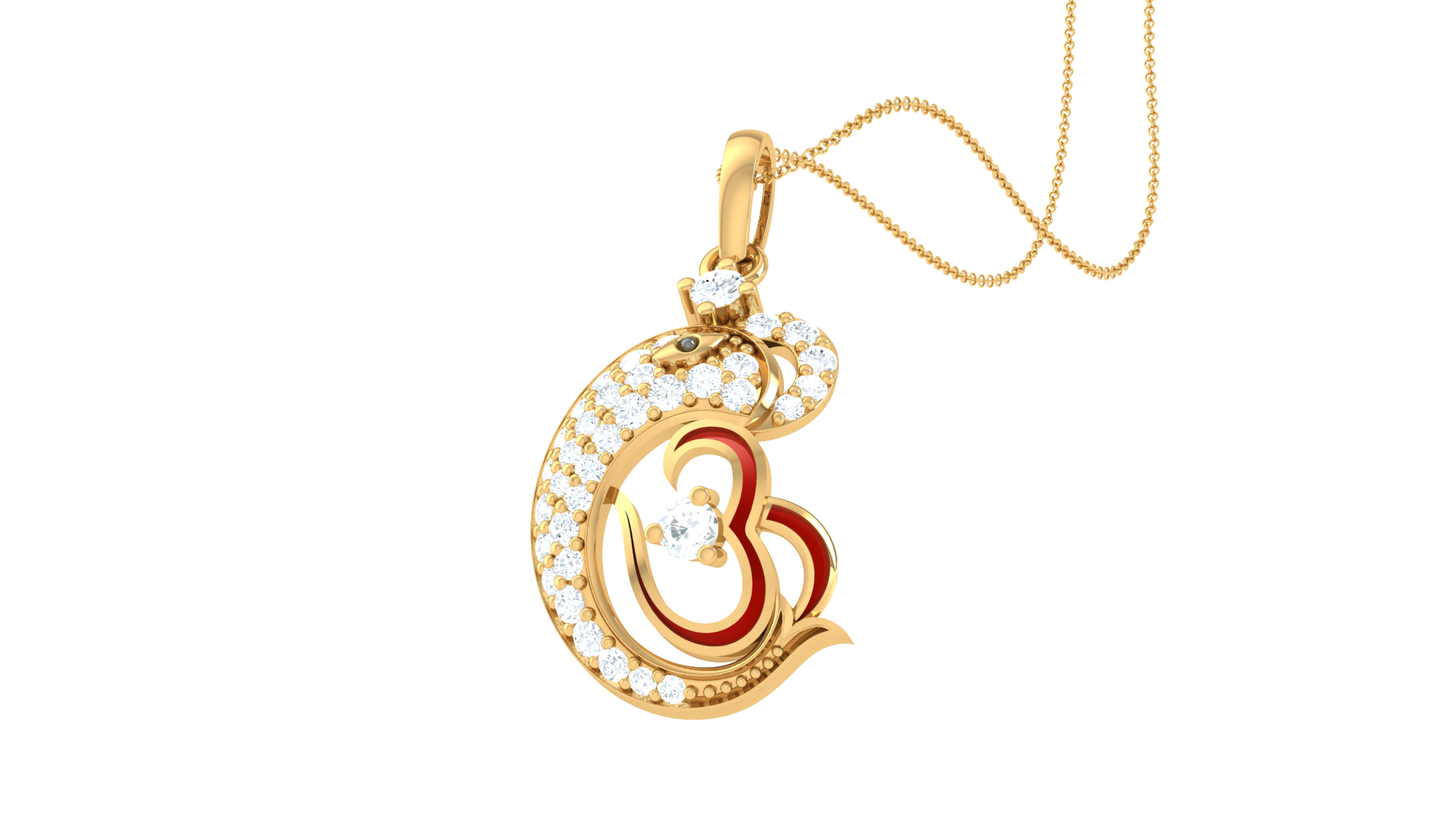 Om Ganesh Pendant In Gold - 0.24 Ct Sparking Diamonds