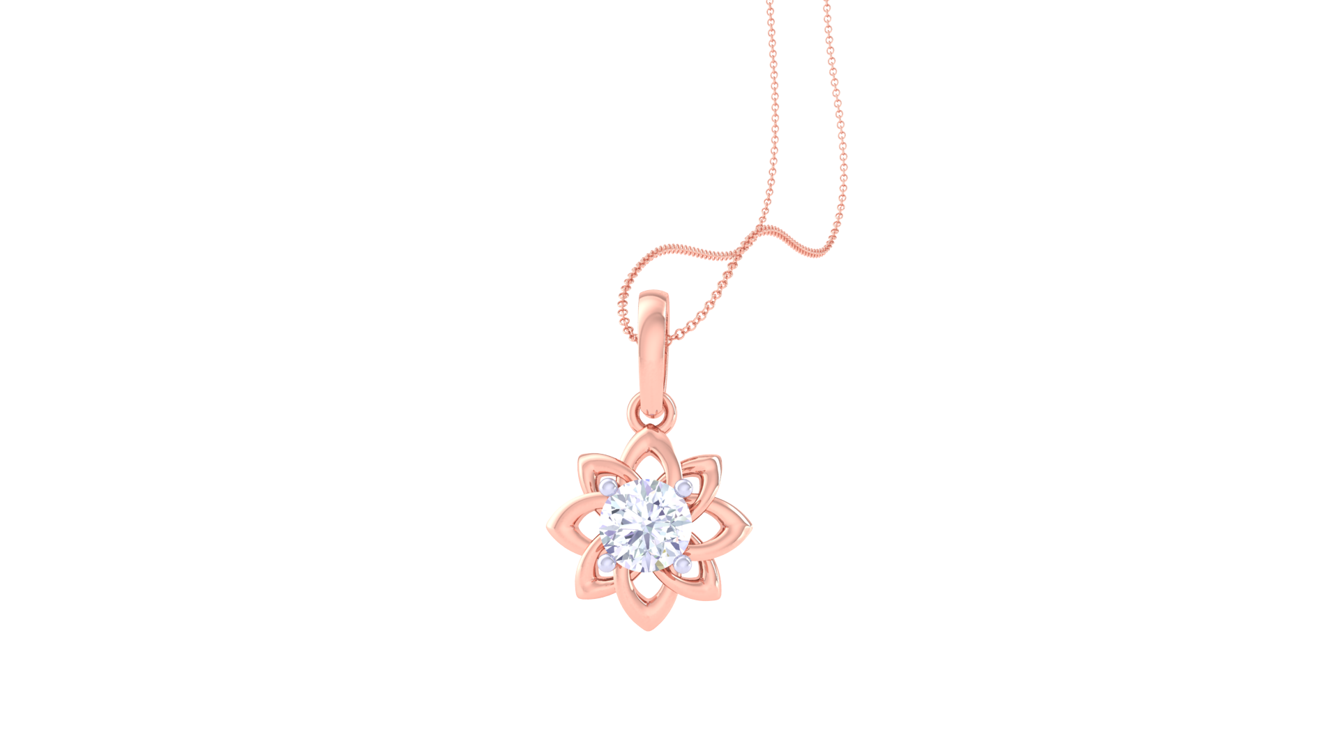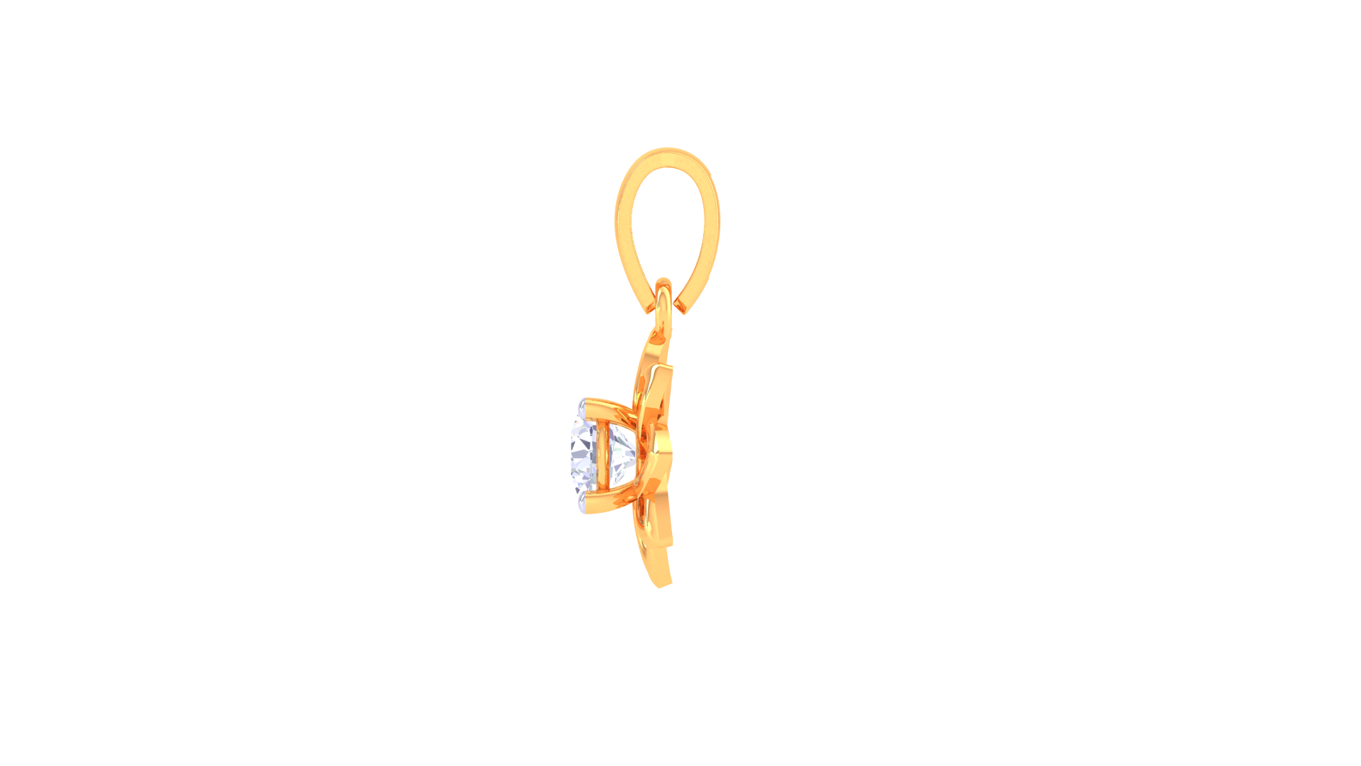 Golden Flower Pendant With Loop Petal Solitaire - 0.59 Ct Round Diamond