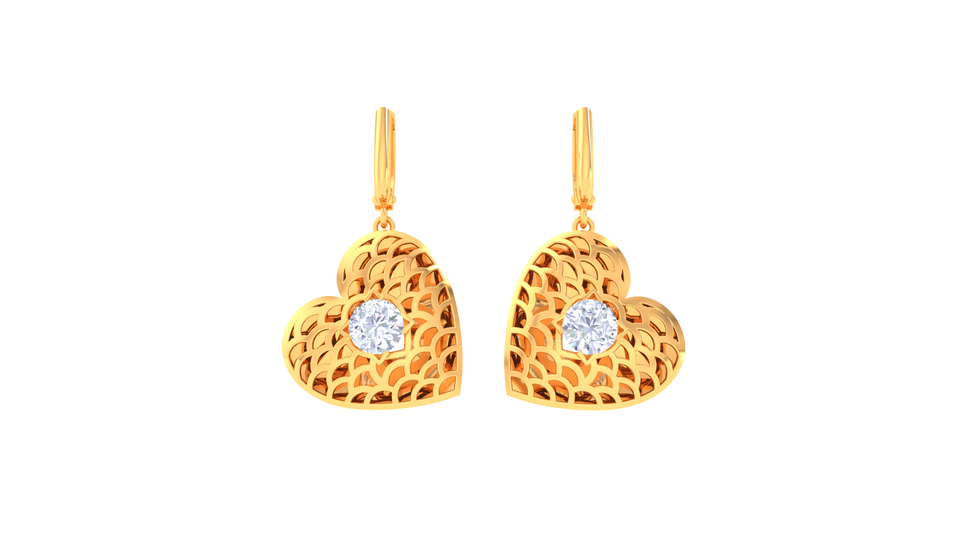 Delightful Heart Golden Hoop Earrings - 0.64 Ct Diamond InCenters
