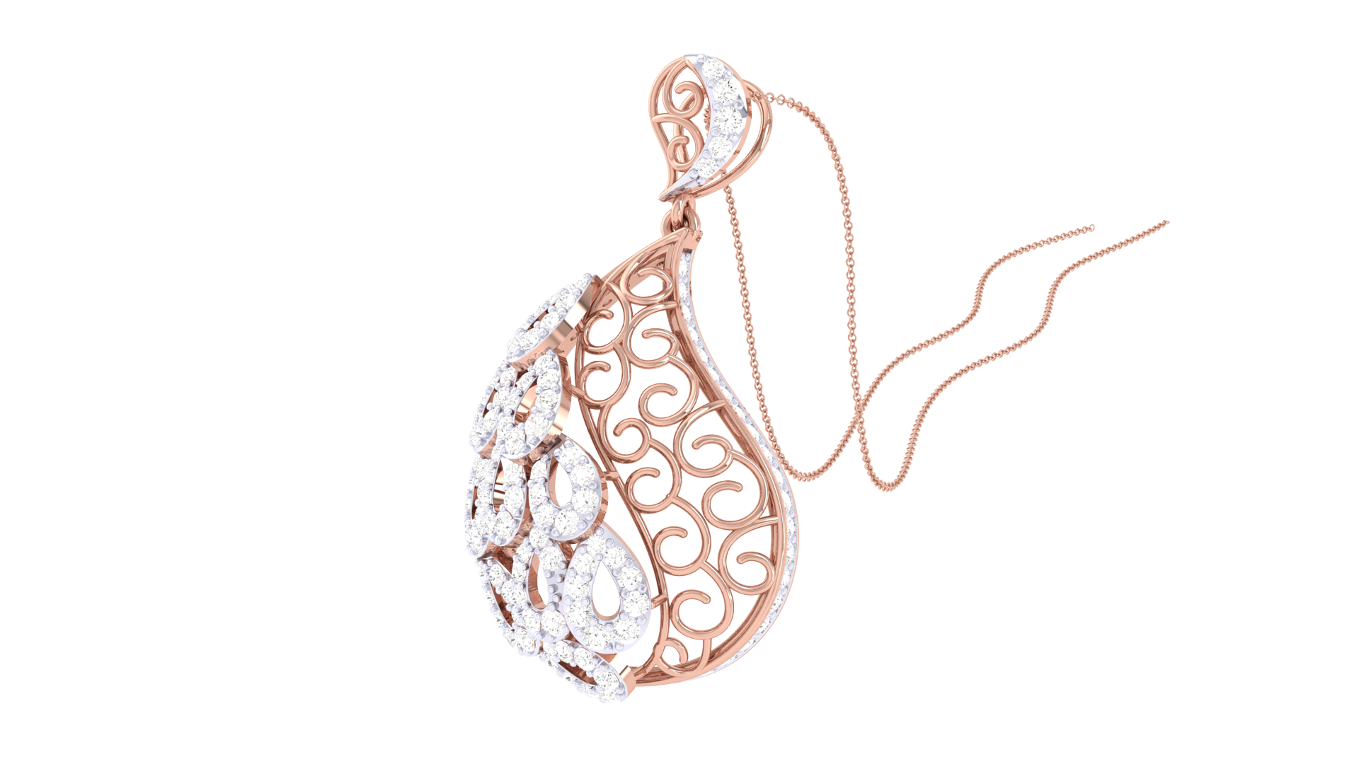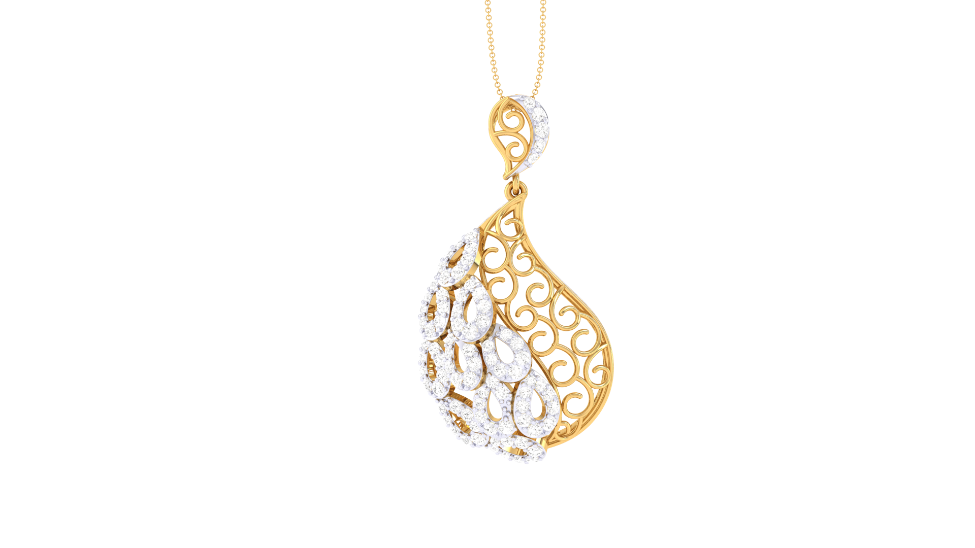 Filigree Teardrop Pendant In Yellow Gold - 0.82 Ct Dazzling Diamonds