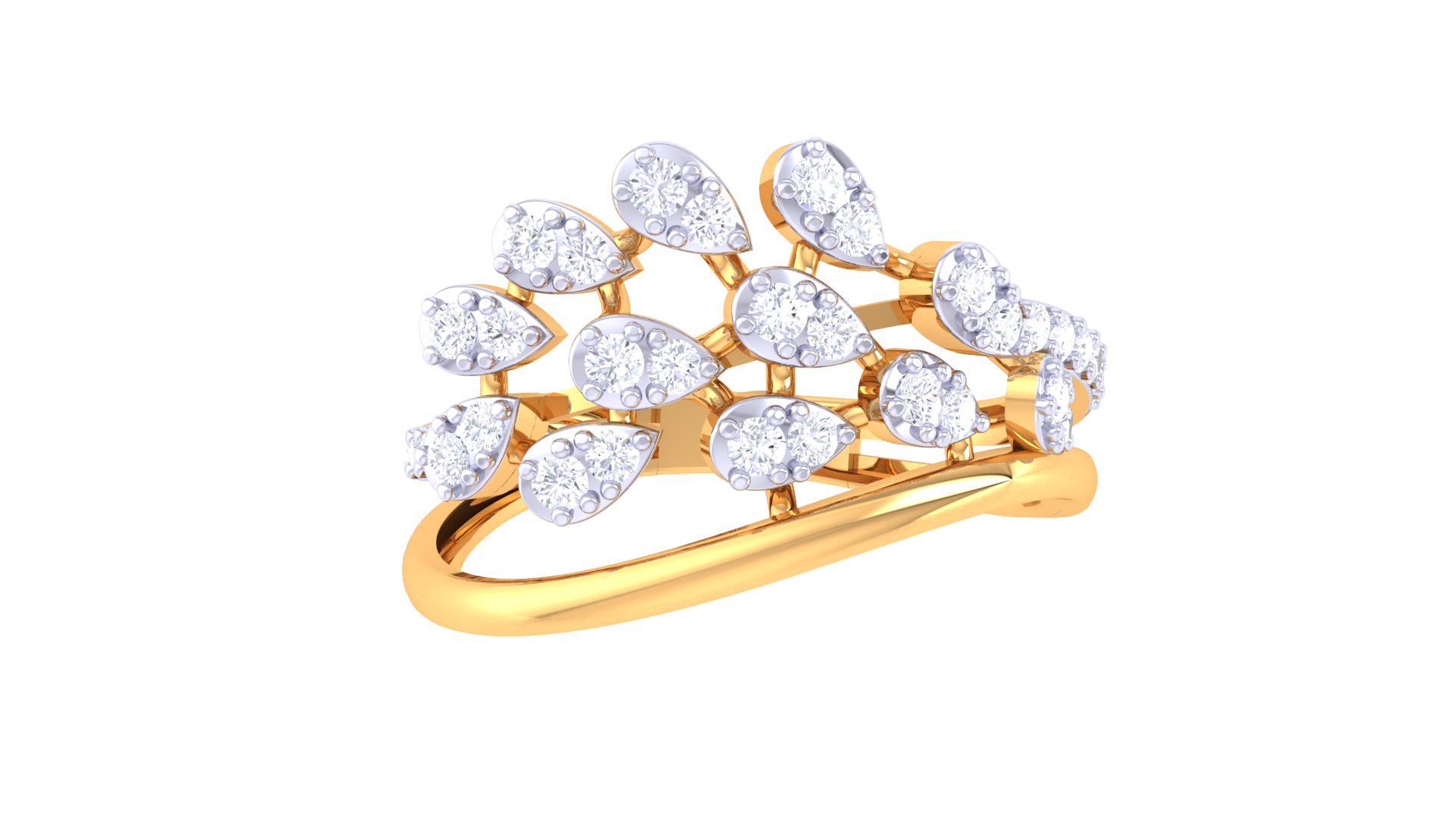 Crafted in 2.81 grams of radiant gold, this statement ring features a cascade of teardrop-shaped diamond clusters totaling 0.30 carats.