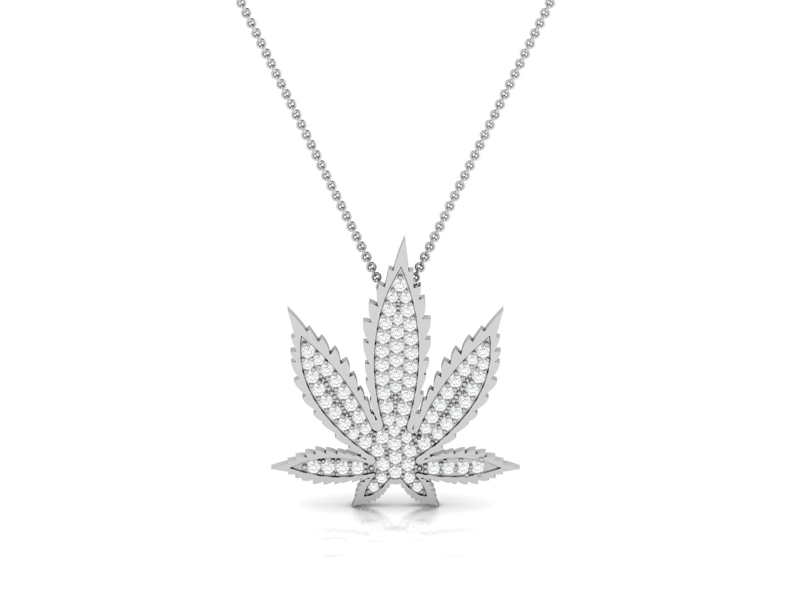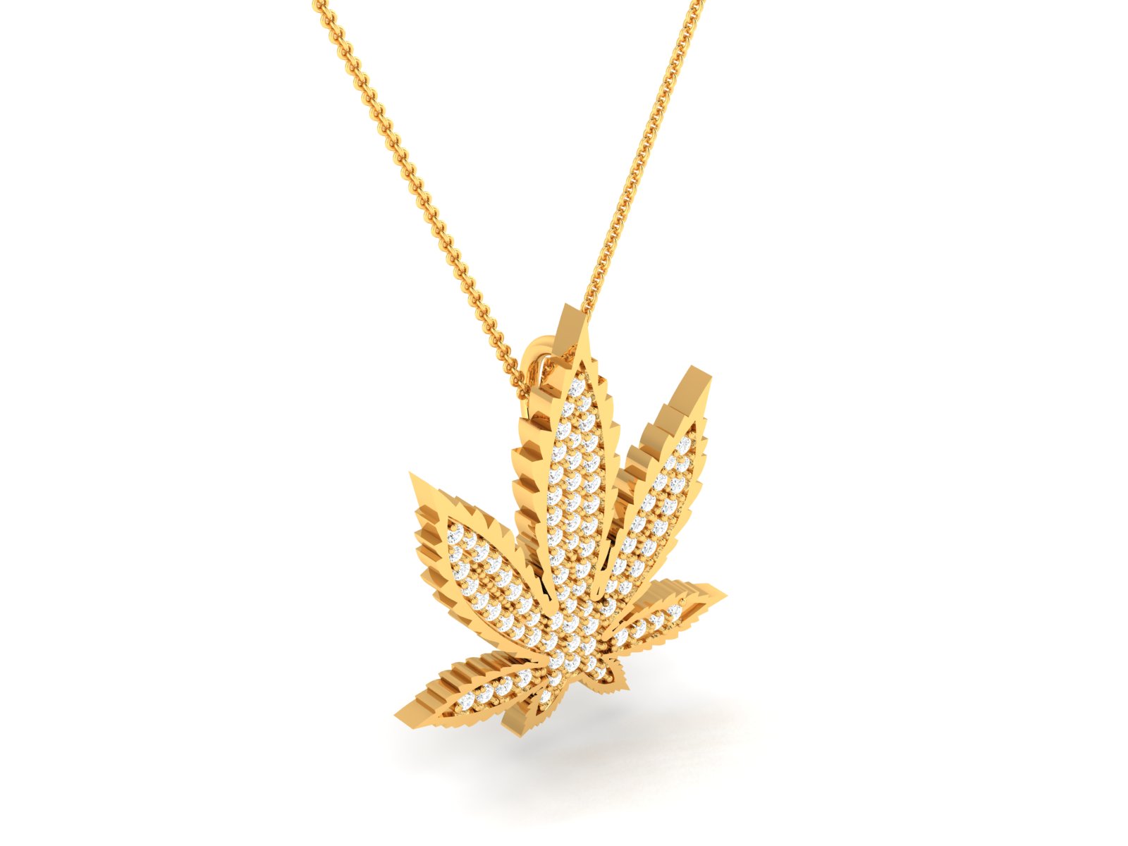 The Iconique Leaflet Diamond Pendant is crafted from 3.30 grams of radiant gold, featuring 0.60 carats of exquisitely cut round diamonds.