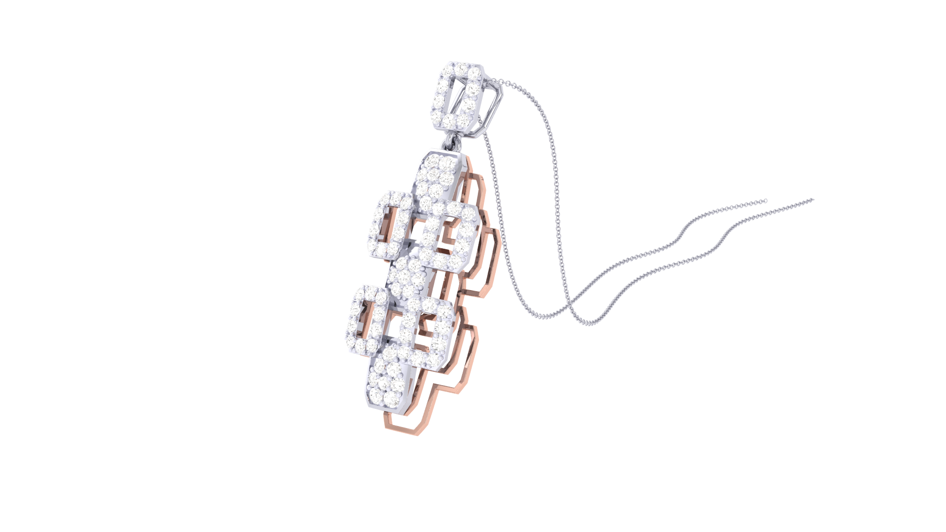 A modern masterpiece in symmetry and sparkle, this pendant features a geometric arrangement of diamond-encrusted squares and rectangles.