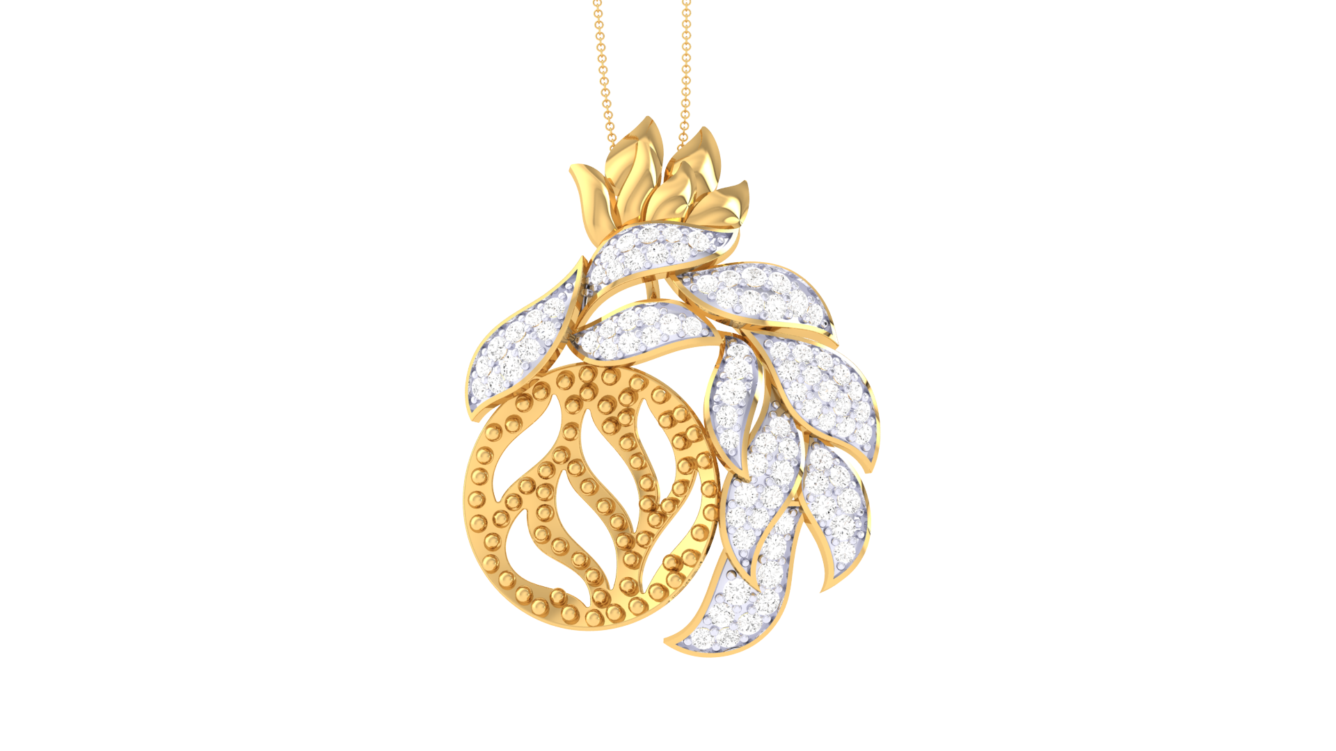 A graceful ode to nature, this pendant is crafted in 3.54 grams of polished yellow gold and adorned with 0.62 carats of brilliant-cut diamonds.