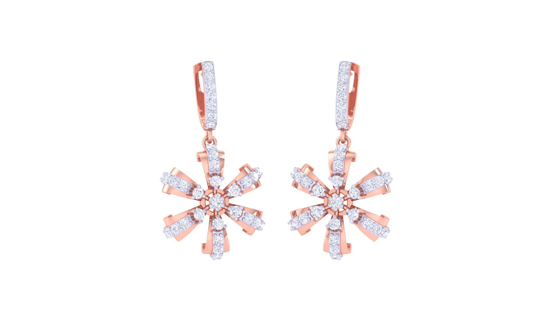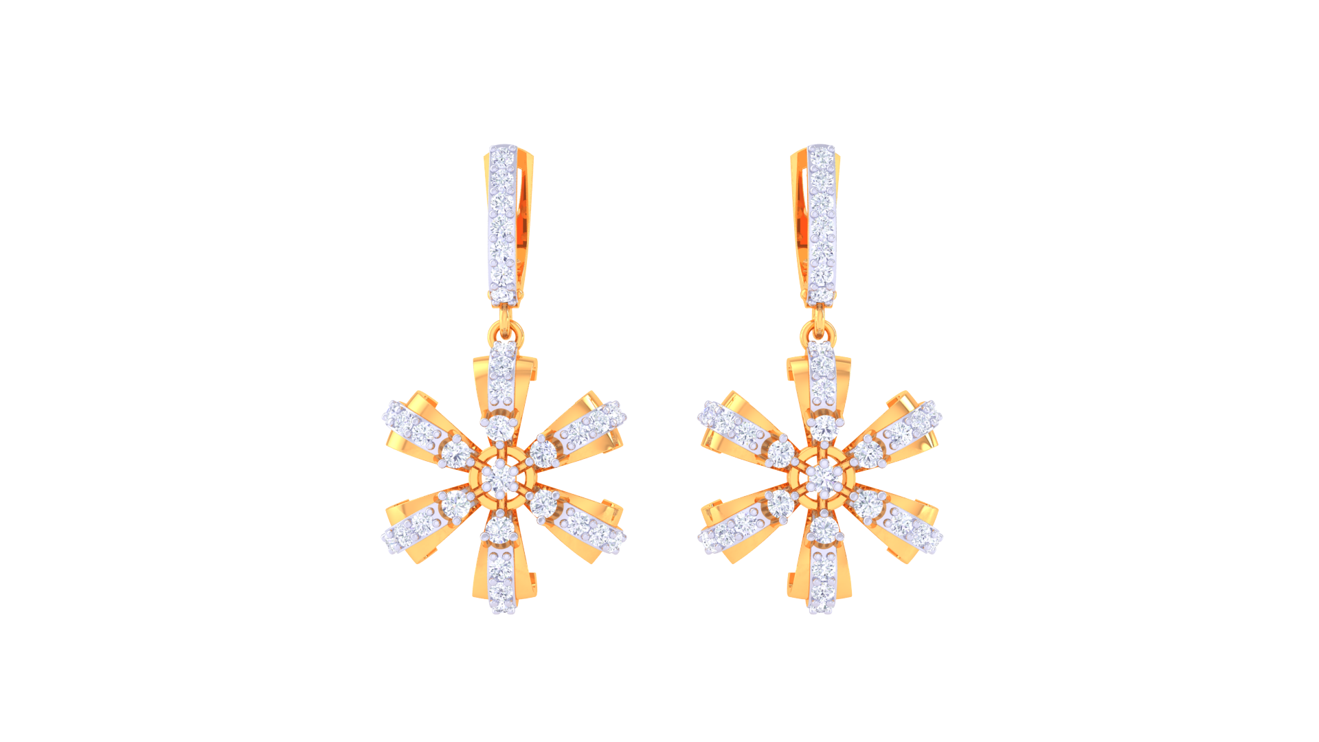 Inspired by celestial starbursts, each earring features a central diamond surrounded by alternating gold and diamond-encrusted rays, totaling 0.81 carats of dazzling brilliance.