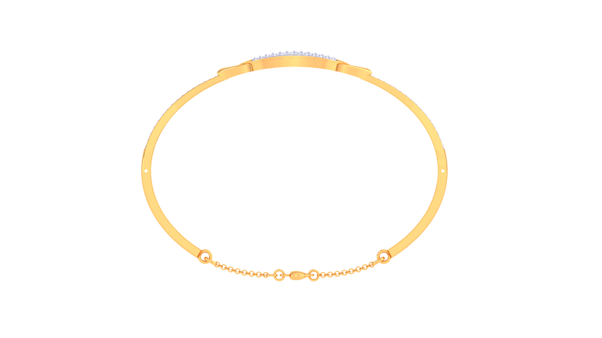 Twin gold loops connect the motif to a diamond-lined band, while a delicate chain with gold beads ensures a secure and adjustable fit.