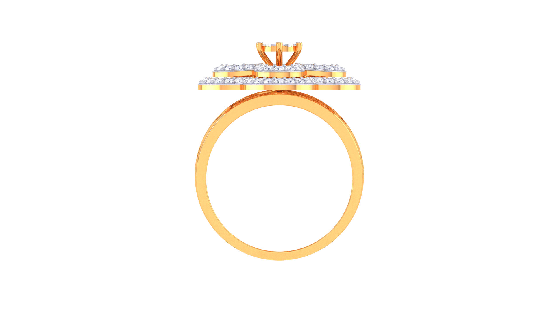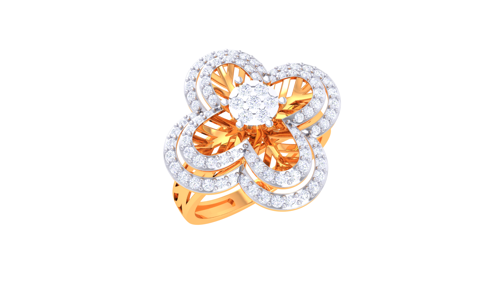 Trilune Étoile Radiance – 0.51ct Diamond Gold Ring captures celestial beauty with a trio-inspired motif, featuring a radiant cluster of round and marquise diamonds totaling 0.51 carats. Crafted in 18kt gold weighing 5.26 grams, its unique star-shaped bloom shines with astral elegance for a refined statement.