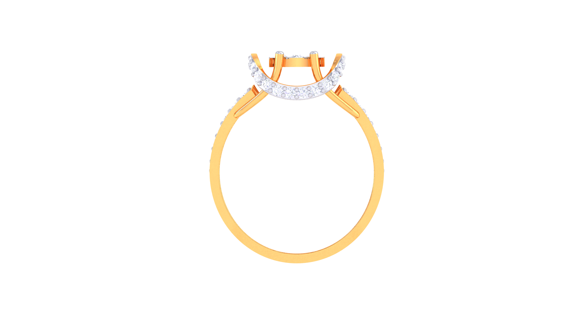 Éclat Centralité Radieuse – 0.66ct Diamond Gold Ring features a luminous round diamond cluster (0.66 carats) encased in dynamic sculptural gold, weighing 3.71 grams in luxurious 18kt. The bold centerpiece is accented by gleaming pavé ribbons, blending magnetic artistry with modern geometric form for a striking statement piece.