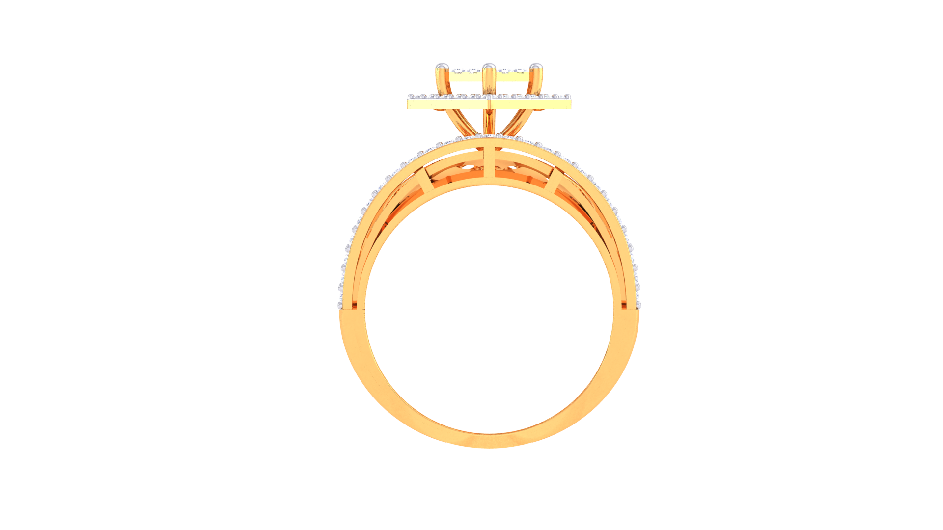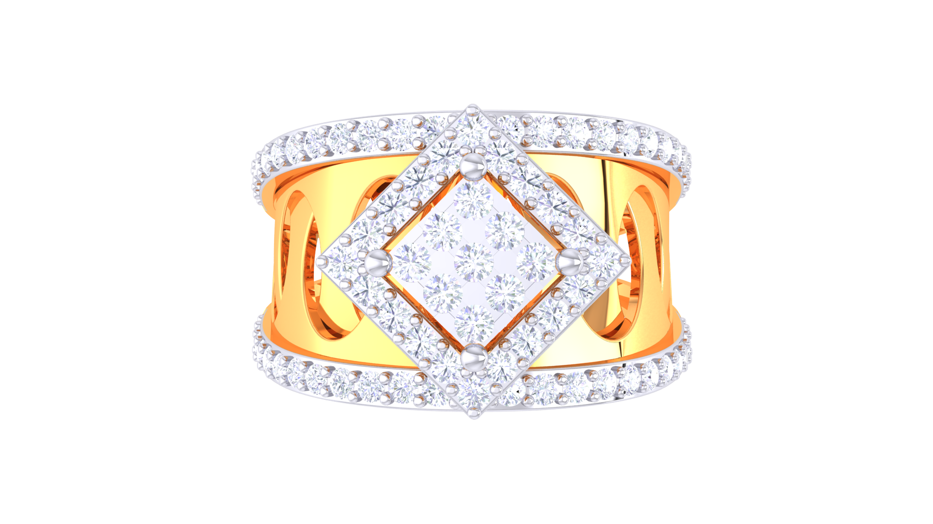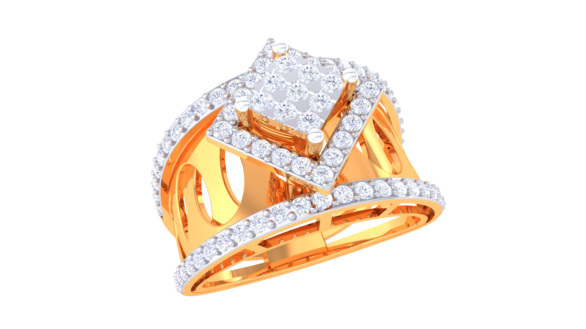 Éclat Carré Illustre – 0.64ct Diamond Gold Ring is a striking display of modern artistry, featuring a radiant princess diamond cluster framed by pavé halos and openwork detailing. With 0.64 carats of diamonds and a bold 6.29 grams of 18kt gold, the geometric silhouette brings bold sophistication and unapologetic style to any collection.